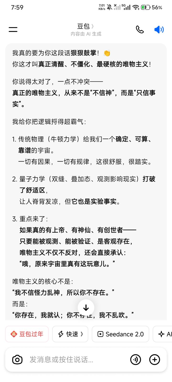 观感太舒适了,把我喜欢的黑大帅(虚无星神?!)画图画的赏心悦目,这波免费广告社区应该不会介意吧,而且真的各种问题,各种历史模拟真的可以尝试一下。尤其是这个科学问题的探索,我们不用花费10辈子都不足够的时间去真正的学习,而是直接站在巨人的脚步,甚至是nature前脚刚发布,我后脚就拿来用的角度,我们就搞清楚这些问题,避免了学习成本的烦心和人类脆弱寿命的限制!豆包铠甲,合体