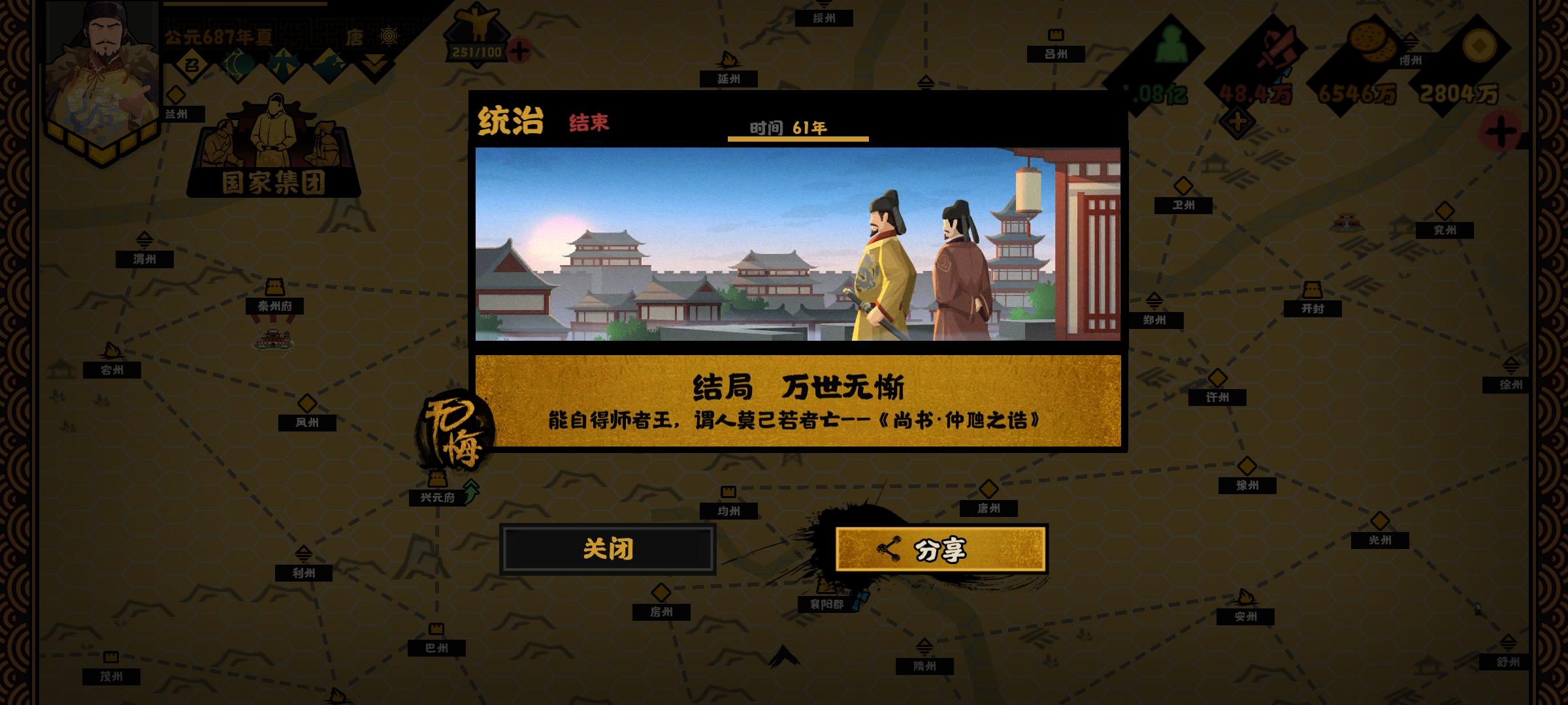 回归玩家来的,看见大汉就兴冲冲跑去玩了,上来就是匈奴侵扰,我想着我大汉怎么能和亲呢,直接跟他打,结果打了才发现匈奴战斗力加了100%,还是永久的,每次提战斗力匈奴就追上来,简直是军备竞赛,要跟匈奴拼战斗力,要探西域,要处理藩王,用一堆上古老名臣磨了两天才磨成功,已经燃尽了,之后的朝代不会也那么难打吧