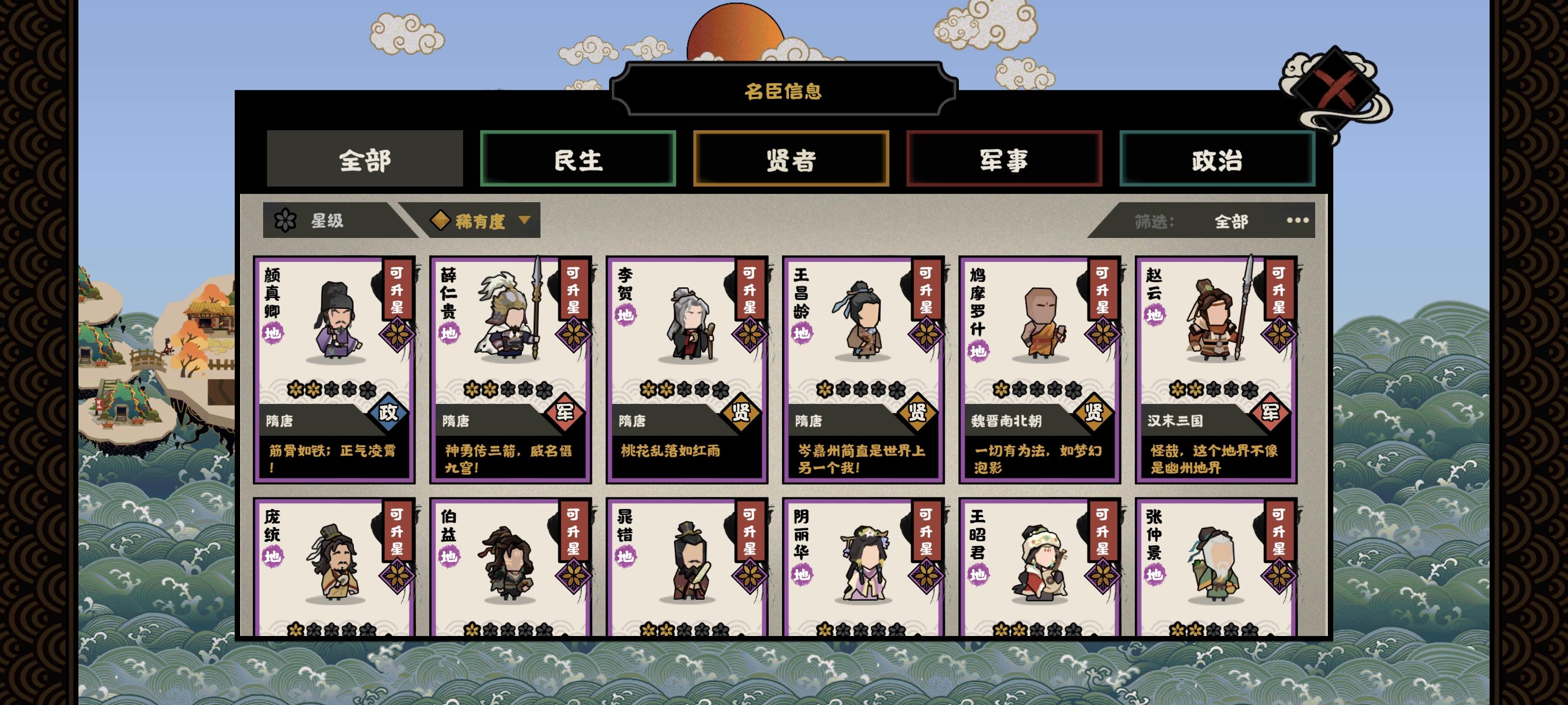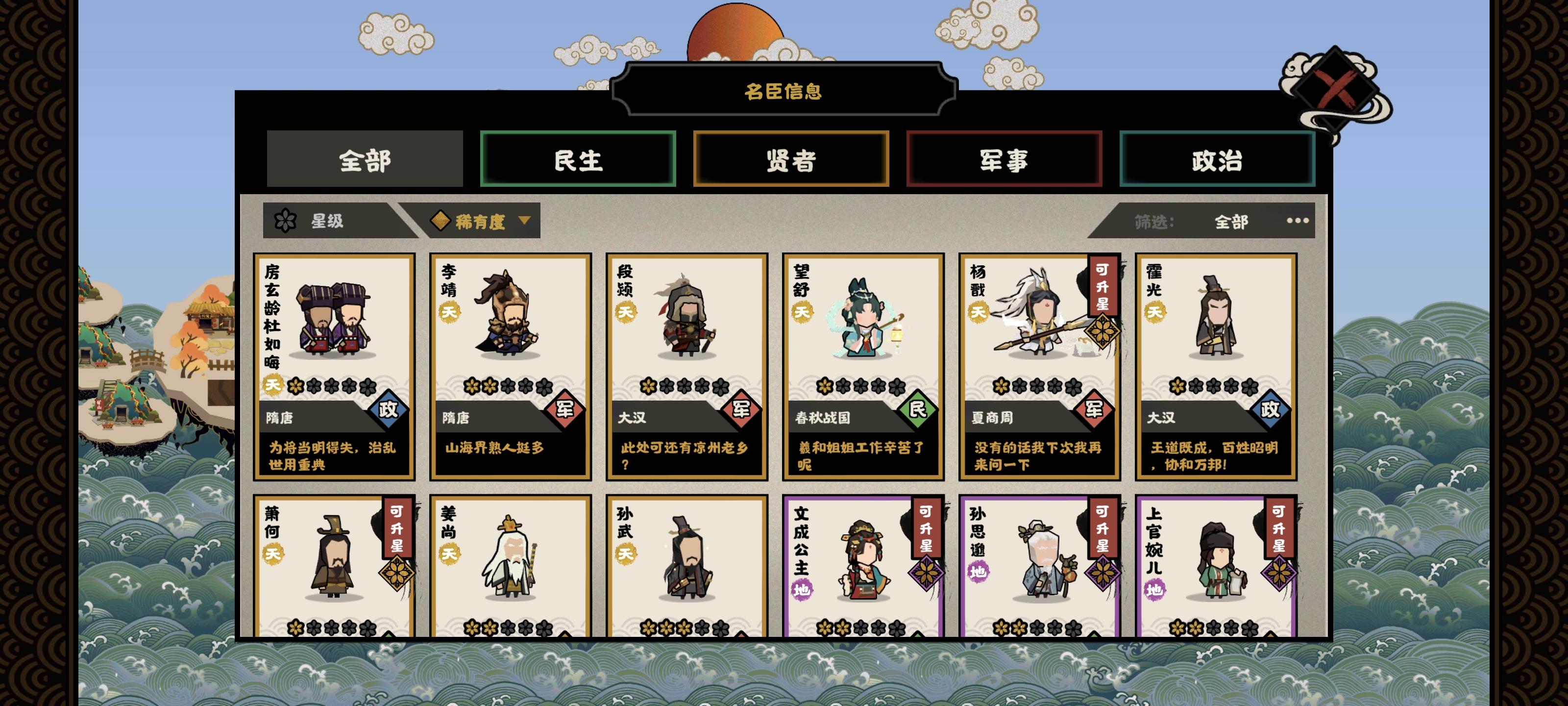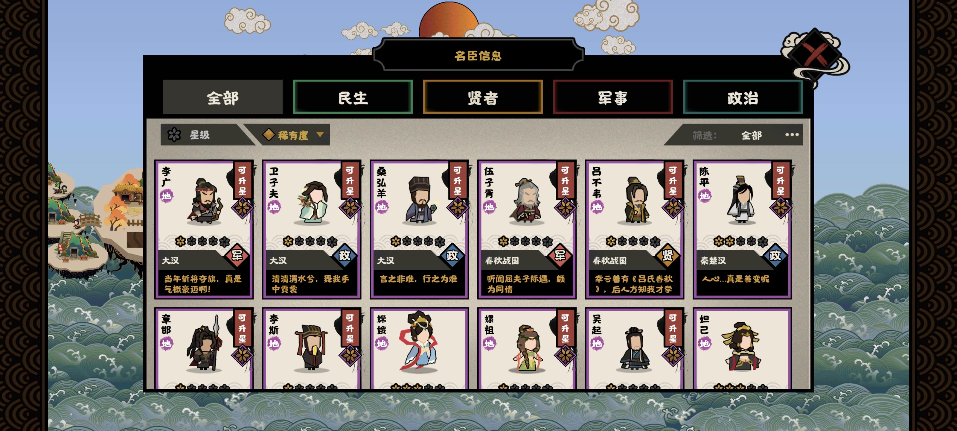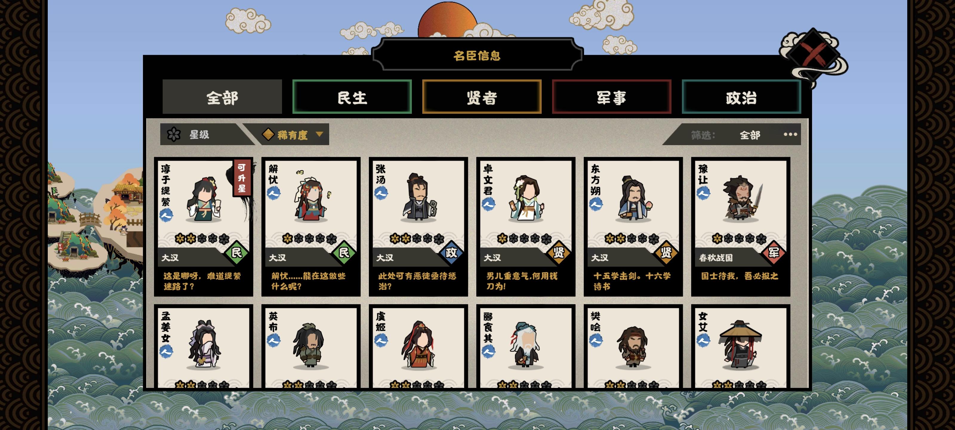 回归玩家来的,看见大汉就兴冲冲跑去玩了,上来就是匈奴侵扰,我想着我大汉怎么能和亲呢,直接跟他打,结果打了才发现匈奴战斗力加了100%,还是永久的,每次提战斗力匈奴就追上来,简直是军备竞赛,要跟匈奴拼战斗力,要探西域,要处理藩王,用一堆上古老名臣磨了两天才磨成功,已经燃尽了,之后的朝代不会也那么难打吧