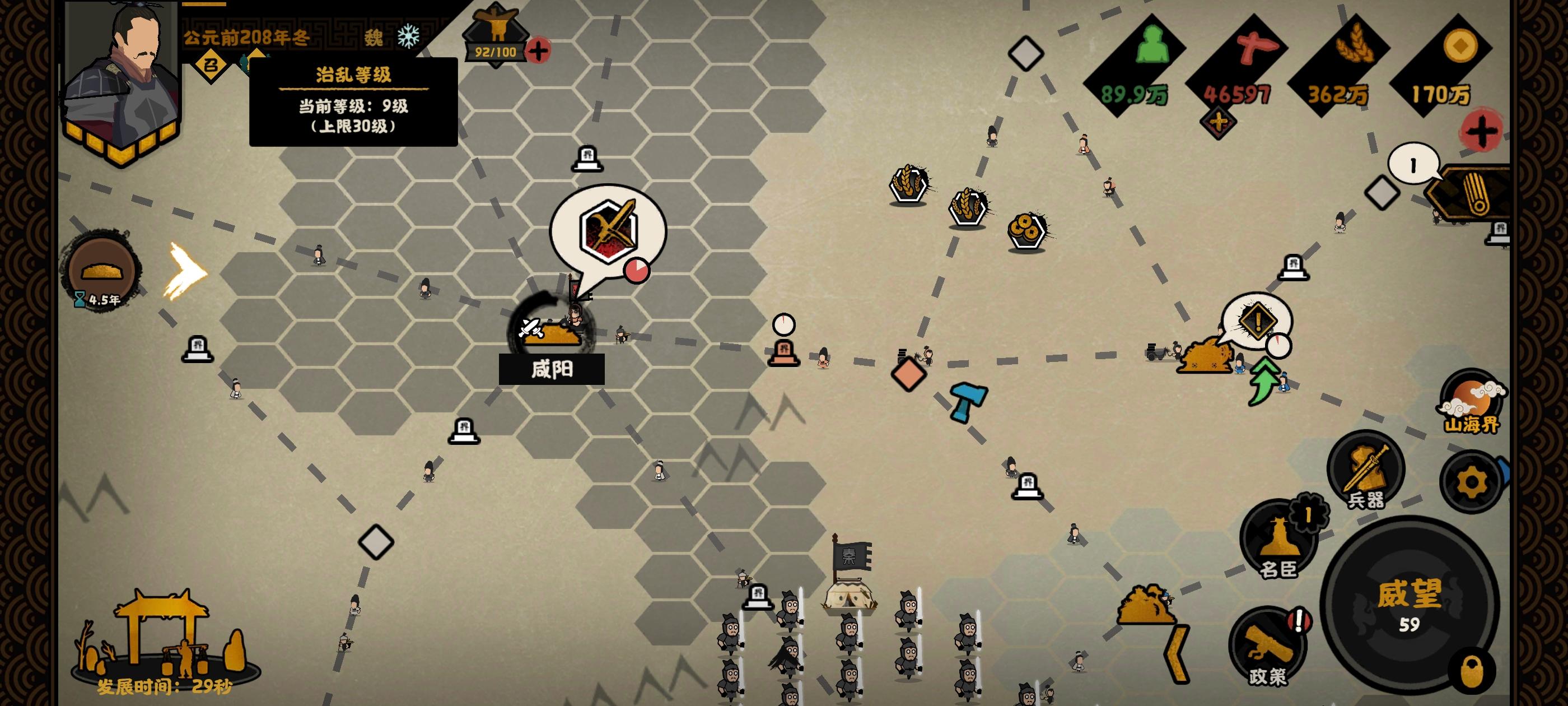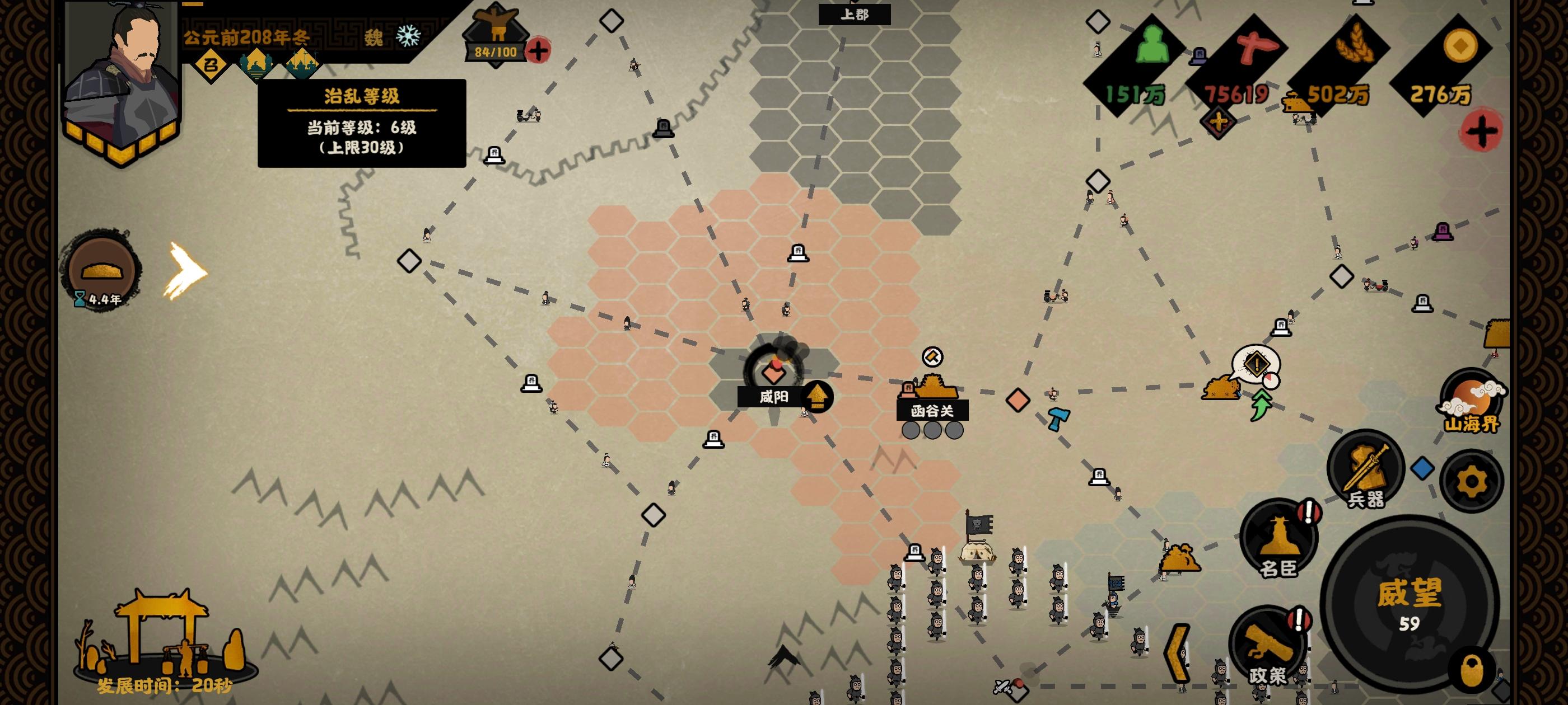 玩了挺久,但是大多时候比较忙,就请人帮我日常代肝。自己没什么游戏理解,只会羲和白起姜子牙商鞅这个掠夺流,没到了后面,剧本越来越难,每次都要挂机好久,凭借资源带来的政策优势才打得过。和其他人聊的时候,感觉自己好像根本不懂这个游戏。