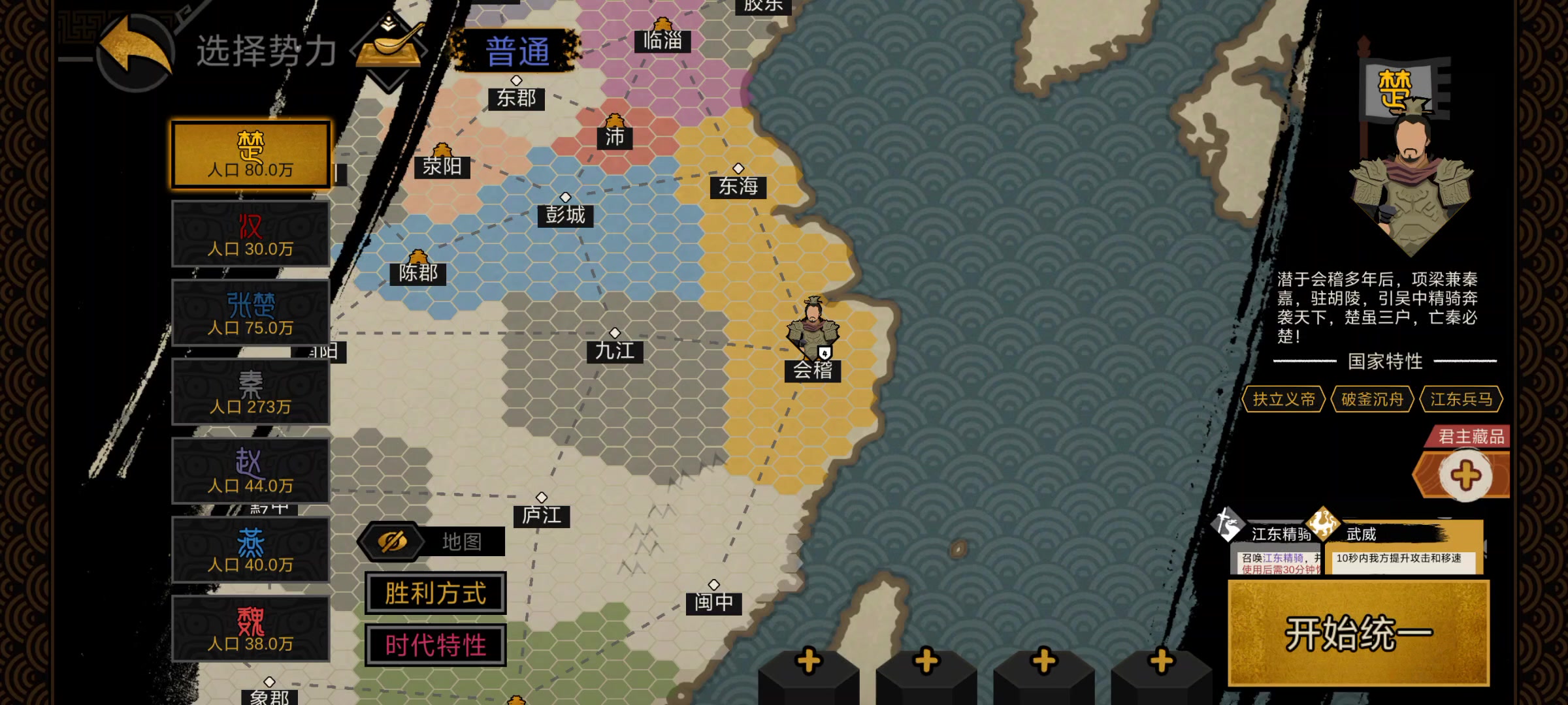 回归玩家来的,看见大汉就兴冲冲跑去玩了,上来就是匈奴侵扰,我想着我大汉怎么能和亲呢,直接跟他打,结果打了才发现匈奴战斗力加了100%,还是永久的,每次提战斗力匈奴就追上来,简直是军备竞赛,要跟匈奴拼战斗力,要探西域,要处理藩王,用一堆上古老名臣磨了两天才磨成功,已经燃尽了,之后的朝代不会也那么难打吧