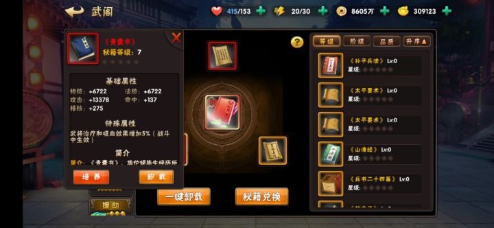 八、挑战系统主要有巅峰试炼、秘境探索、太虚幻境、日常挑战、试炼之地、个人战役、团队副本、首领挑战、夺宝、过关斩将、名人堂。巅峰试炼每关四次战斗,建议上阵的角色一人分配一次战 斗,所以在极限培养中,也要照顾其他三位武将。资源分配建议6:2:1:1 或者 5:3:1:1。不建议什么 9:1:0:0,8:2:0:0 的,因为这样其他武将都是纯粹是送怒气的,尤其是遇到开大无敌那种武将,直接控死。日常挑