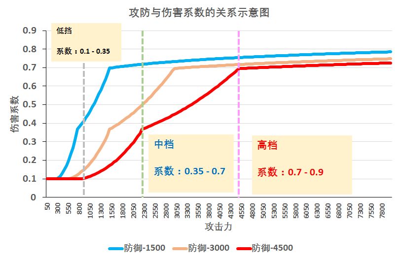 大家好……我是来自m4点小菜鸡,我已经不打算玩剑了,看到二进天赋实在寒心 今天给大家带来一个最没用但是是本游戏中最核心的机制攻略----佣兵的攻击力和防御力如何决定最终伤害的~ 在你心想“这不是废话,高攻击力高伤害呗”之前,我希望你能稍微耐心地看看后文,有一些发现还是很有趣~ 首先说个基本结论: 基本伤害=攻击力 x 伤害系数 攻击力不用多说,伤害系数是什么呢?实际上,伤害系数是由攻击方的攻击力和