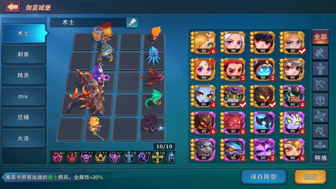 现在三进时代,防守队只练满三队就行了 雷法 骑盾 精灵先知 这三队主要不比连续攻击,在没有过疲劳情况下,大部份情况下都能守住 ,接着下面就要准备6队攻击队,攻击队练度要求主要练满主输出手就行了,别的队员可以来个二进煅12就行了,像火法,你练满格拉斯,哥布林队你练满哥布林战车,刺客练满拉姆塞,梵侬。虫子队和你伽蓝队的虫子是一致的,你只上7人就够了,虫子队能进攻打任何阵容(除了精灵先知),然后来来三队