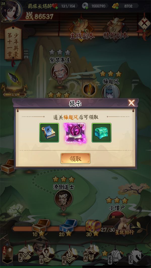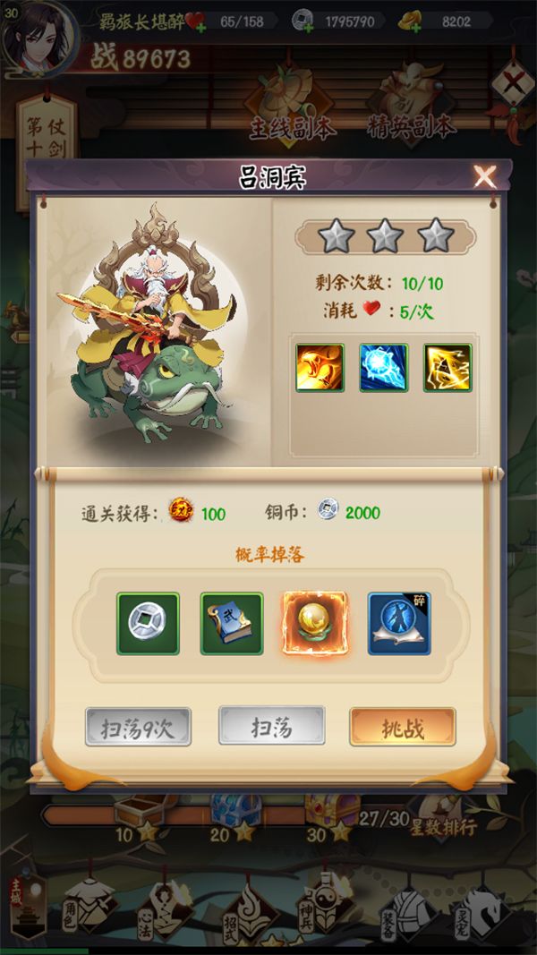 打副本是剑与江山中升级的主要途径,那除了经验,副本就没有别的用处了吗。NONONO,副本奖励可丰厚啦!主线副本根据相应的对手,可以获得天命石,银两,武学点,突破丹和体力等等,各个boss还有可能爆出优质心法碎片!精英副本除了主线副本能获得的道具,还有招式升星必备符石等等,还有什么优质道具?大侠自己来探索一番就知道啦!无论是主线副本还是精英副本,打过每一个关卡都是能获得星星的,最终宝箱奖励需要