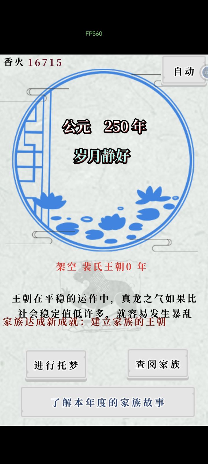 等了好久,一直在看战乱还是和平,感觉差不多了,家族人口、声望都够了,以为是天时地利人和,我就同意了起兵,结果发现是这个时间,那么大一个250,我真的栓Q。