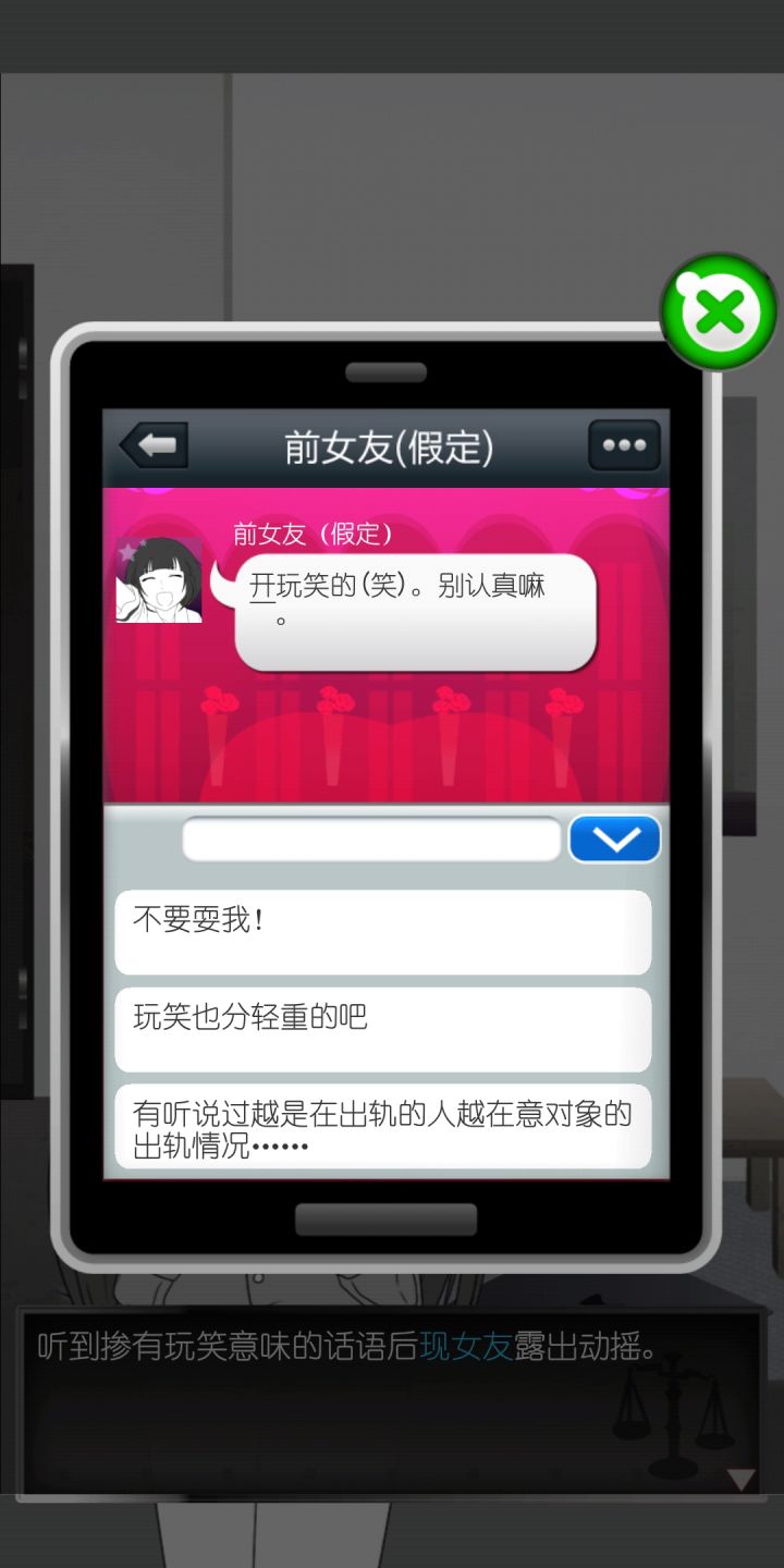 首先。这是关于一个渣男的故事。所以,绝对不能代入太多感情……(๑˙ー˙๑)其次。前女友和现女友友好相处的场面,确实百年一见。然而这是建立在堆砌谎言的基础上的。脚踏两条船是绝对没有实践价值的!不可尝试!否则就是渣男主角的后果啦233(另外双飞是不可能双飞的~前女友是个不得了的病娇。个人房间也是比较标准的病娇配置——破碎的脏兮兮的玩偶,潜藏的密室牢笼。在此之上再加上杀掉现女友的结局……噫,就算脸蛋