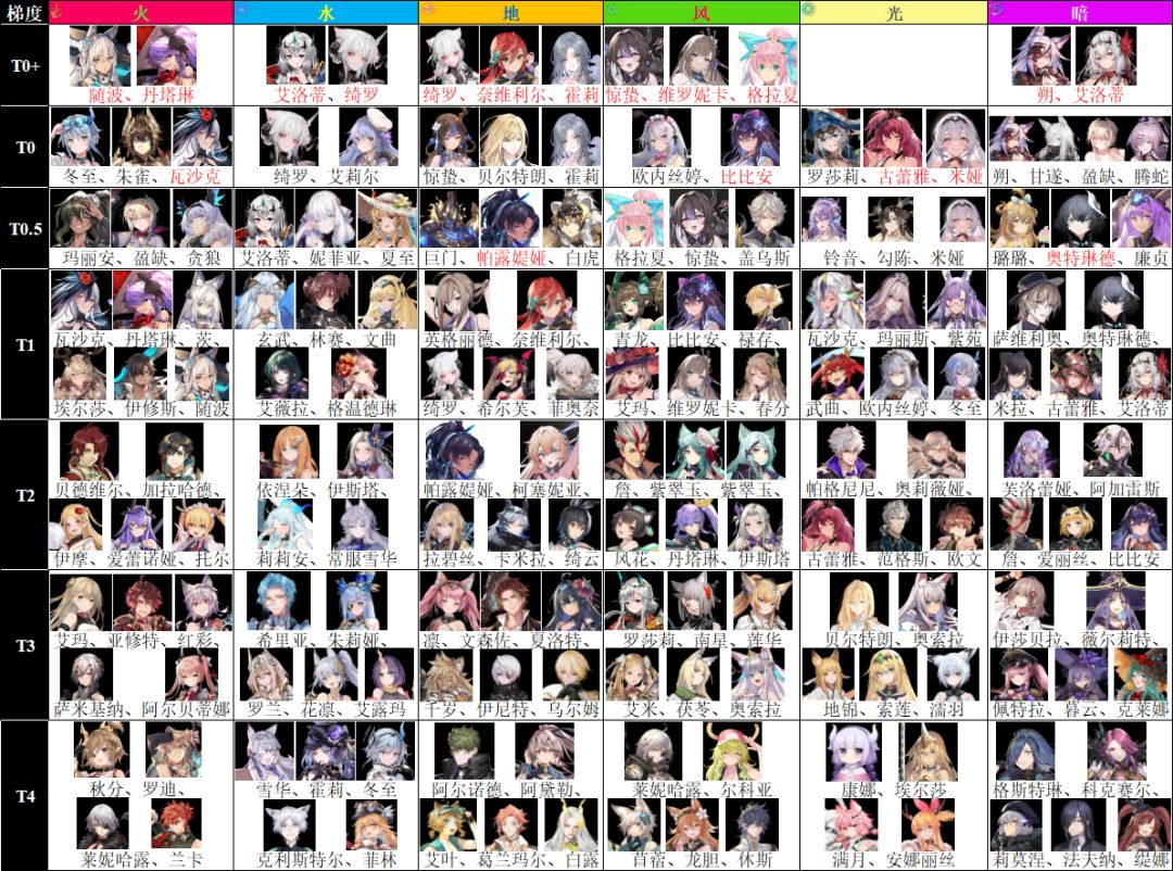火属性是悠久之树二周年主推的属性,因为有新角色和新奥秘的加入表现尚可,但依然不推荐作为主要属性培养。最新的限定角色瓦沙克虽然赠送了70抽,但本身的技能组遭到了极大的阉割,把角色正常使用技能的能力放到了同调加护里,导致本体更像是-5调的半个角色,而开启同调加护需要额外抽取5个本体或者使用450个万灵许愿签,代价极大。 目前来看,火属性属于投入大的同时回报不高的属性。除非特别喜爱火属性愿意投入5调瓦沙