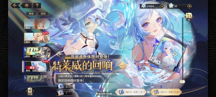 图一:新水lssr丽塔,水二队新成员,配队为sp文曲+ssr妮菲亚+ssr绮罗+ssr丽塔。水二诸神队顶配视频可以去B站查看。图二:新水回响和虚数体,虚数体没有保底不用硬抽,回响是水二队用的。图三:除了最新的fssr妮菲亚,土二队基本都在了。配队为sp巨门+ssr霍莉+ssr帕露缇娅+ssr妮菲亚(妮菲亚没出之前是用ssr希尔芙),后备位土ssp+ssr越木+ssr莲华。图四:限时活动不用多