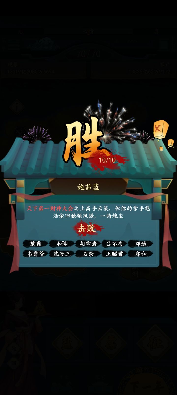 随着家大业大。孩子们也长大开始帮我管理家业了。一亿也差不多了。但,不知道为何,妻子们总是为些小事在争吵,也不知道有啥好吵的。家里不缺吃,不缺穿,金银首饰也是要啥有啥,但还是争吵不断,有一天采茶女带着孩子来到我面前,问我,我最初的梦想是什么?可能是因为生意上的不顺,也可能是因为年纪大了,或者是因为自己过的太累了,那天我回答道,记不清楚了,最初的梦想是钱么?还是新世界?或者是其他的什么?她听完的回答,头也不回的带孩子走了,我心咯噔一下,站起来,问她要去哪?她没回我,我看着她离去的背影,竟然没有追上去,在她的背影彻底的消失在我的眼前后,我癱坐在椅子上。想不懂这是为啥,现在这样难道不好么。为什么还要离开?当初那么苦都陪我走过来了,现在为何还要离开?只是因为我记不清最初的梦想了么?