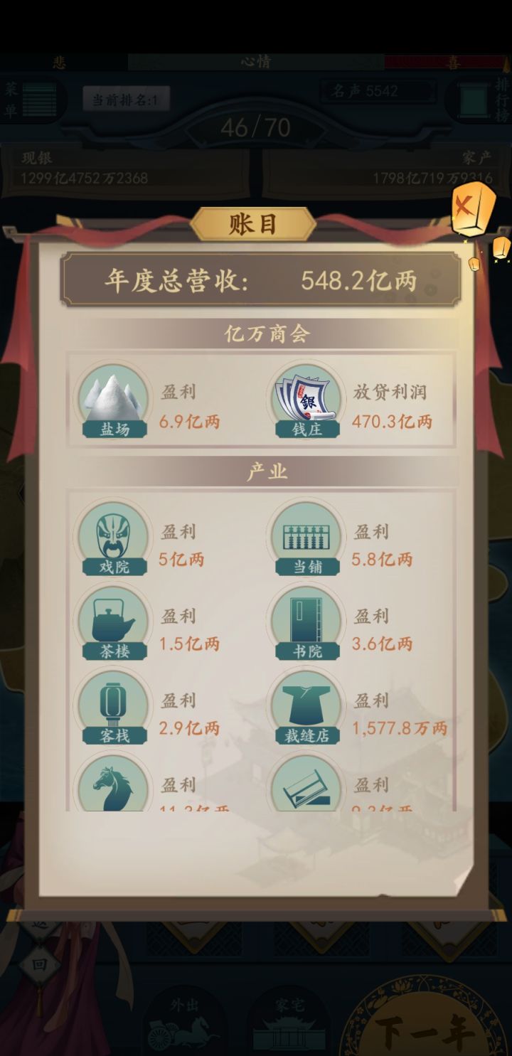 第二年将店子扩大了一番,用卖货赚的钱将对面那个酒居买了下来,买了一个好一点的瓦屋做完这些后,瞅了眼记的账剩下20两只能委屈她了.我立誓要让她住最好的房子.带上金银首饰。