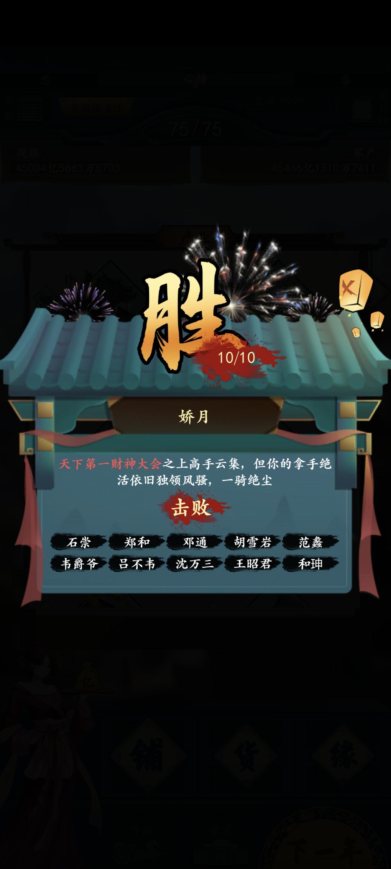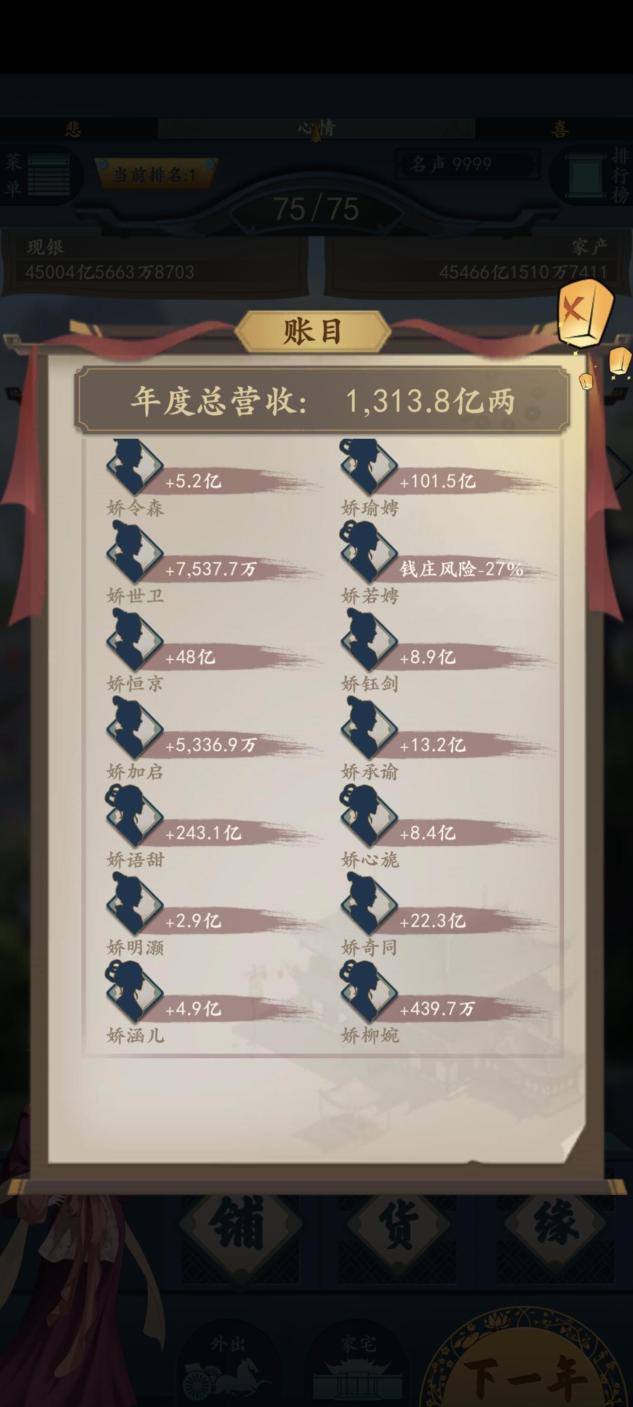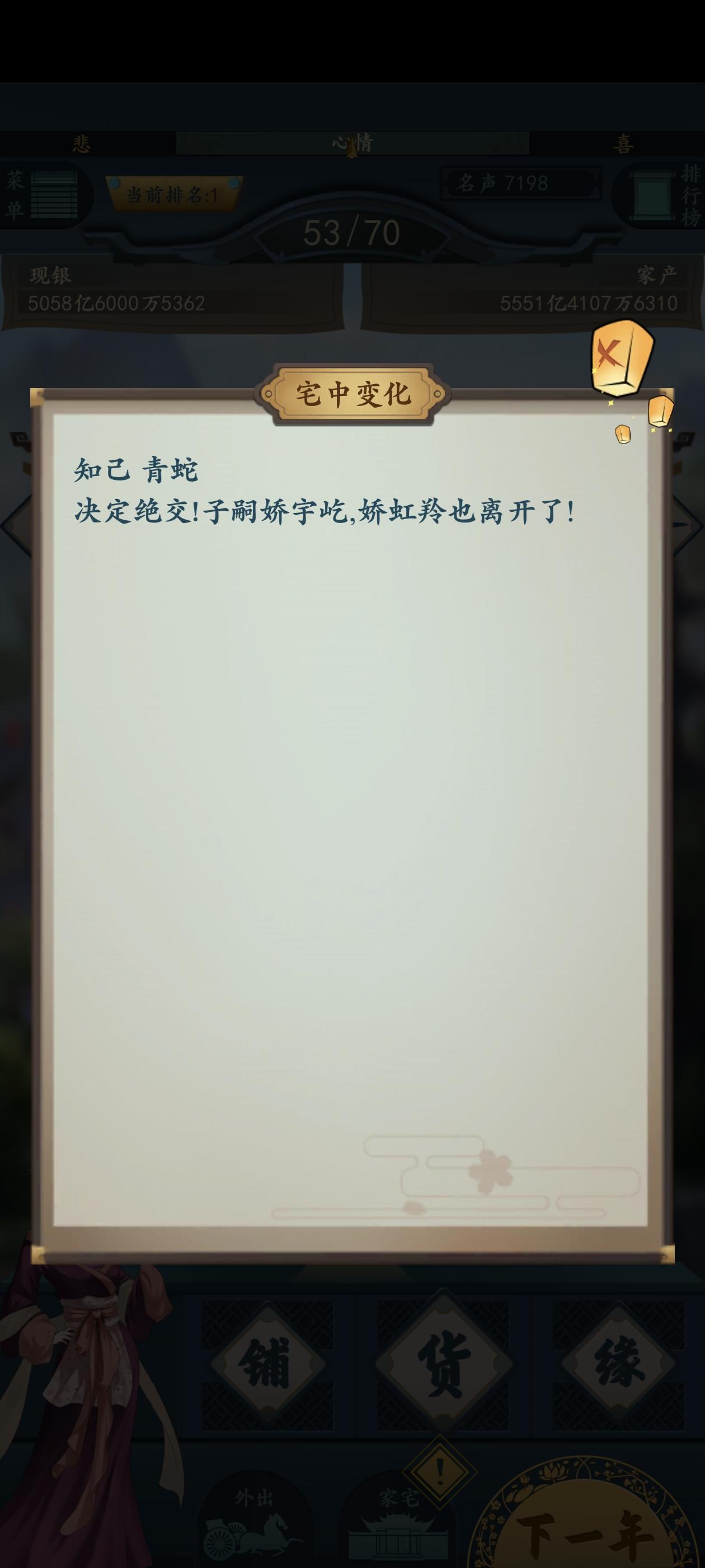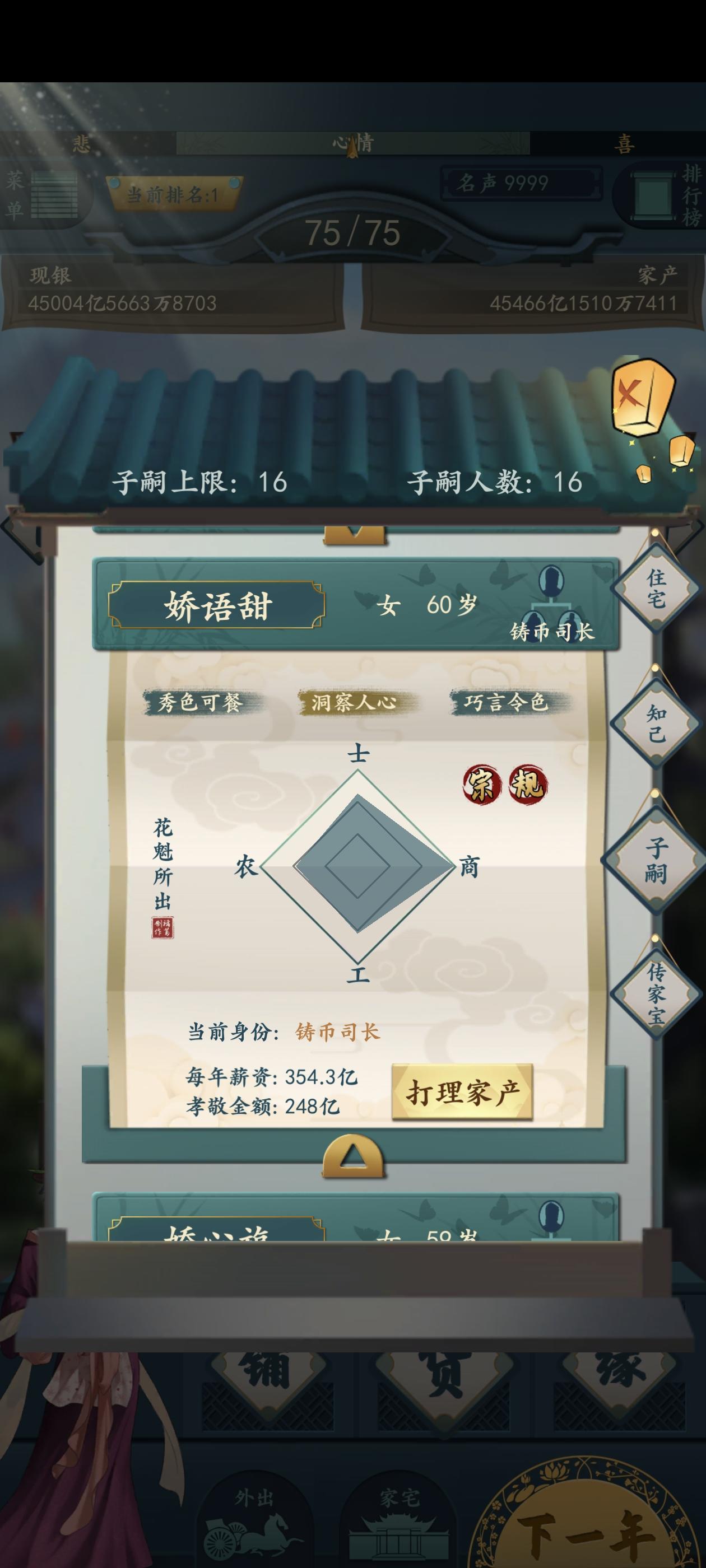 希望能开启一个无尽模式,过世后选择继承人,然后接着玩,一直继续下去,不然技术不好的,一直玩不到后面钱庄盐场这类,还没玩一会就过世了