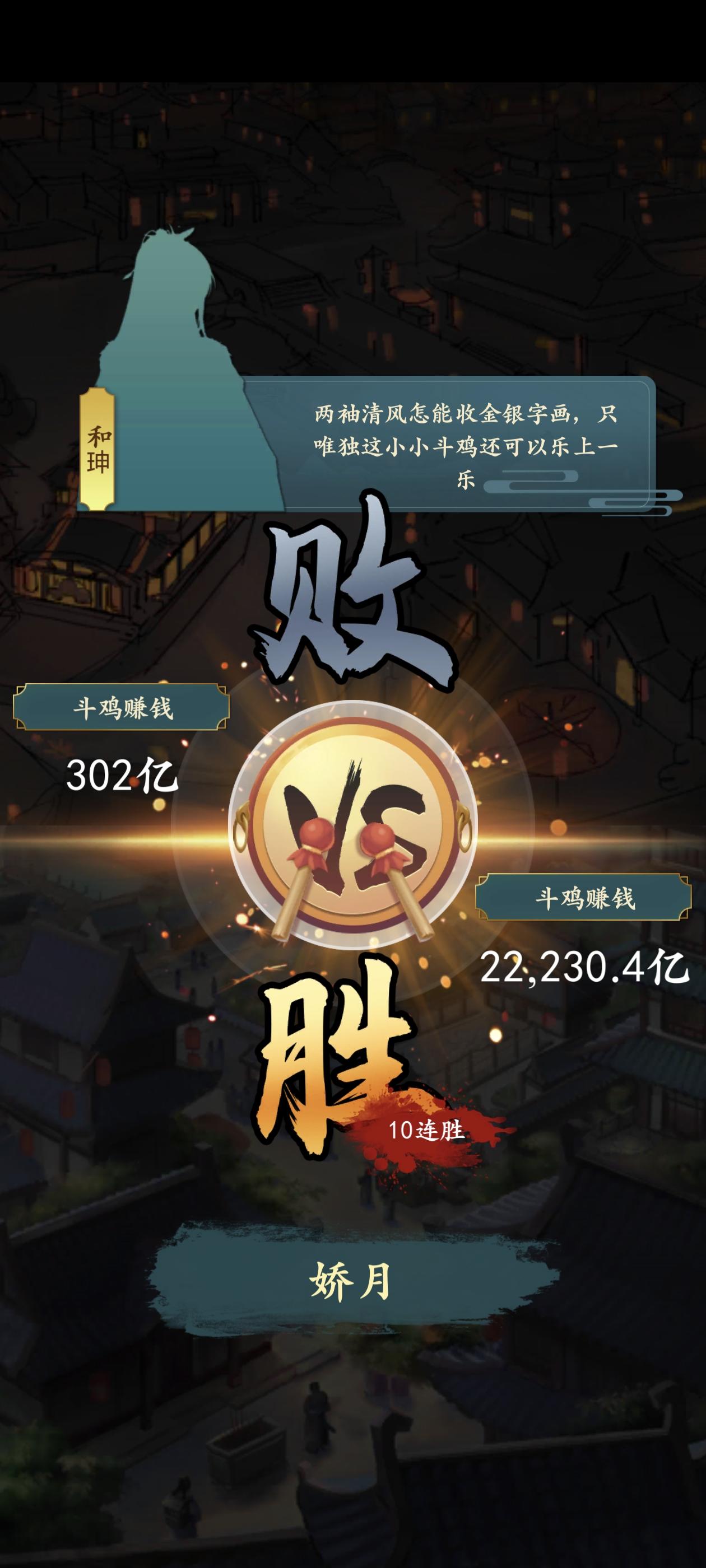 ~~第一次破万亿,纪念一下~~后面斗鸡从五千多到一万,,然后不敢赌了岁数太少了还是广告加了5年。。等明天就有日晷了 耶