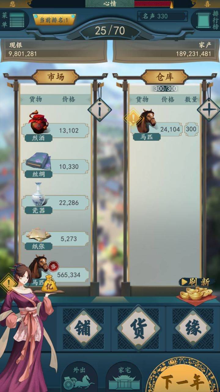 本玩家是个多愁善感的人,接触了该手游后有一些感触,不吐不快。一开始我是通过抖音上广告推广下载了游戏。由于喜欢经营类游戏,便开始一发不可收拾地沉溺于此。刚开始想的就是赚钱赚钱赚钱,整个人钻进钱眼里面。谁能带来钱财?行,娶他!安排!分手费太高?和离,要钱不给!为了堂主大哥的每年15万抛弃青梅竹马的小丫鬟。前期为了多积攒产业迟迟不肯换房子,和知己蜷缩在破旧的茅棚里。直到有一把刷到了某个结局,事情开始慢