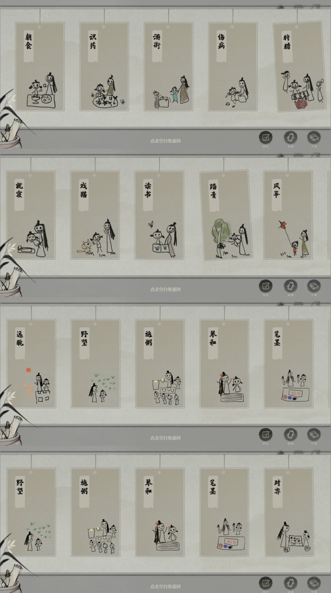 包括但不限于以上字,收集关卡也不止图片所示,不过这些足够完成成就的了 悄悄告诉你,成就页面是一个小故事呦,点击已收集的成就就可以翻面看了