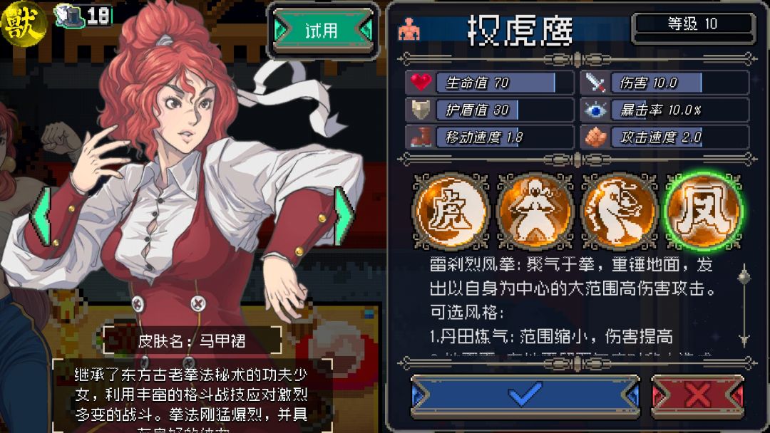 注:本文仅出现我已经解锁了的角色,奥莉和狂战士这两个角色我还没解锁所以不出现。 本文只写我个人认为的最爽的打法,最爽的打法每人都有自己不同的一套。 【权虎鹰—拳姐】 主技能:三技能选择二风格 副技能:幻影 六道之力:天人 介绍:使用三技能的二风格,只要一进防就能打出大范围高伤害,使用幻影作为副技能能弥补攻速上的不足,可以说是既有清屏也有攻速; 使用天人作为六道之力,可以在关键时刻回血; 至于道具搭