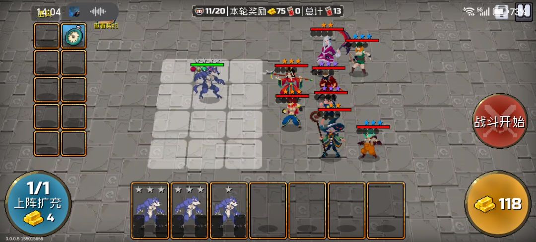 总结一句话,快速升本,品质优先,紫色以下不必升星 间断打了3局全过 买出蓝色或者紫色棋子渡过中期,能刷到橙色之后随便玩,优先买角色棋子,怪物棋子没有角色强,只打15波不用考虑羁绊,如果你要问15波以后怎么玩我也不会[表情_捂脸哭] 第一波推荐枪兵和蓝色小偷,小偷多掉金币,枪兵清怪快 第二波小偷开局买一个白棋然后全部升本,枪兵可以一打二,直接升本 第三波买一个绿棋带两个白棋剩下全部升本 第四波对面有
