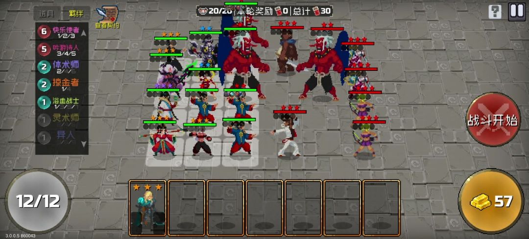 一张白卡,5星,打通19关 想冲20大概需要合出6星/5鬼族/二羁绊是体术师 开局零元购直升5星,之后拿草莽英雄,孤勇者 羁绊需要邪术师,鬼族,这局刷到雷电法王然后发现根本触发不了 道具需要冰精灵 献祭拿老头和红小偷 前19关基本没问题,20关射手蛇皮走位,冰精灵解冻就跑了 如果拿到鬼族血量减半或者有体术师闪避应该能过 等待有缘人挑战[表情_微笑][表情_微笑][表情_微笑]
