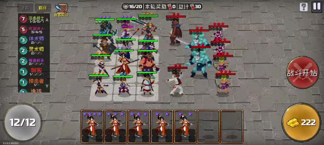 15波: 还是以刺客为主 先升等级,然后找个能打的刺客,慢慢打,升满级后找武菲和黑法。此时最好能升到三星或者四星,四星带道具和队里塞两个鬼族基本薄纱15 银藏攻击能力不行,五星银藏打不过天狗也是没谁了。。。 20波: 纯粹的数值,通过方案我就知道两种 道具飞升:达摩+达摩+达摩+精灵王+精灵王+精灵王,就是三星也能干碎20波 数值对对碰:血量在15000+且攻击能力可以在30%的吸血下保证自己的血