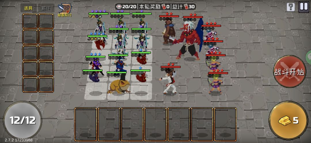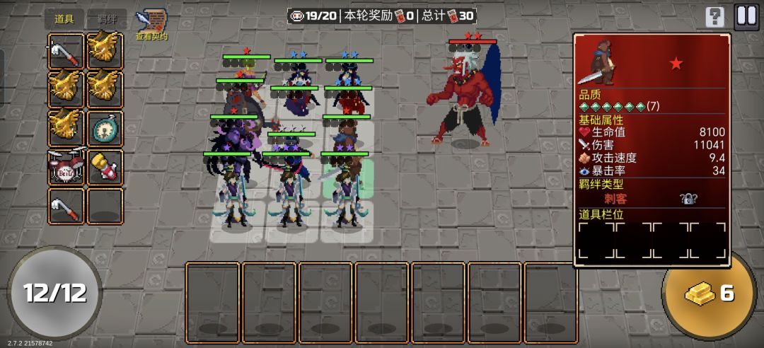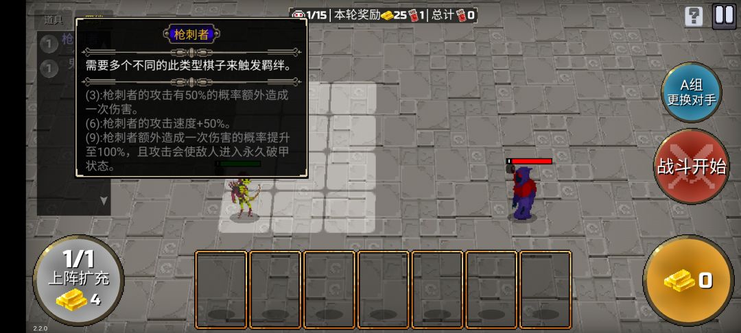 给需要刷红包的朋友提供一个快速通关思路,需要的运营最少,缺点是需要拿到孤勇者契约 要求:拿到孤勇者契约(越早越好),冰精灵道具 通过15关大概6分钟,需要:买10个格子位,合成一个三星武绯,或者钢弹/吸血鬼等 通过20关大概10分钟,需要加上:凑出3邪术师,3鬼族,拿几个红小偷(绿色卡)等面板数值高的卡做祭品 玩法: 第一关,拿双刀刺客/长枪兵/蛤蟆 通过后买三次格子位,契约拿孤勇者,没有的话先拿