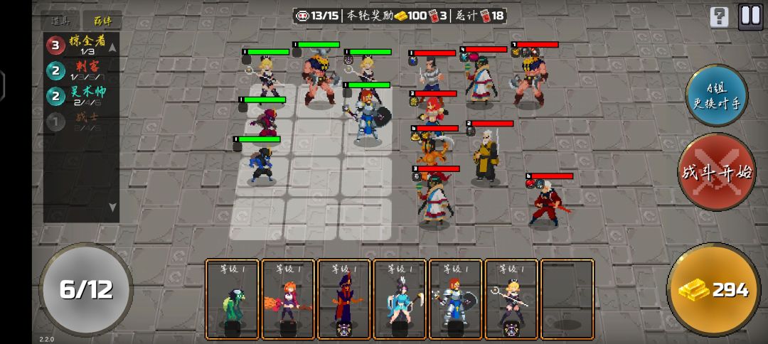 前中期刺客流 前期对面没啥伤害,有掠金者就上 出金角色前不需要升级,等能刷到紫角色时就不用只盯着刺客买了,可以买一两个好使的别的流派的紫 道具前中期就买买6块的拳套和12的冰精灵,可以提高容错 等能出金后买俩后排一前排或俩前排养养就完了 前排推荐老板,狂战,大剑 后排推荐弓箭手,武绯(呃。。她是刺客来着) 我比较喜欢老板+弓箭,一个旋风吸怪一个高频高伤 后期其实道具无所谓了,阵容差不多了后一波下来