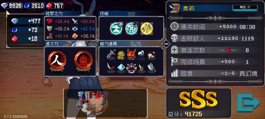 只能说业道逆天,全程点蘑菇就行了 修罗点建议点攻速和移速,各点到100够用,实在不够就攻速优先 六道选业道,刚需回血转盾,回盾雷击,有条件的还可以加个捡金币加生命,这样叠盾更快 道魂就增益效果 原理是希儿超凡皮效果让蘑菇无限用,以此来快速回血,然后转盾后触发雷击,实测盾可以轻松叠到屏幕外
