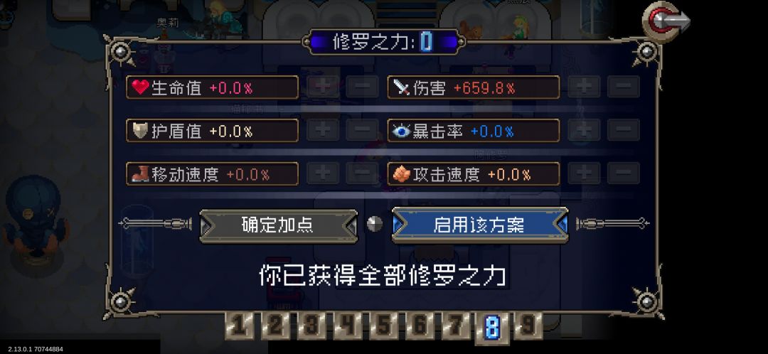 如题,分享修罗之力加点(见图2),适用于绝大多数诡道一击流角色(大剑哥除外)[表情_微笑] 诡道一击流六道,词条推荐(见图3),优点十分明显,那就是可以全程隐身跑图直通关底,且稳定先手秒怪,非常省事儿[表情_微笑] 装备禁用,推荐占星伤害,伤害道具禁用到:只留撬棍(满级4倍)和镜片(2.5倍)[表情_微笑] 酒吧喝30%爆伤酒(1.3倍),初始武器带弹琴上易伤debuff的那个艺伎(没算,大概2倍