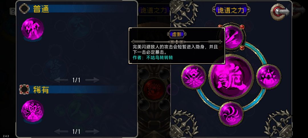 99%玩家都不知道,这个稀有道力可以延长闪避无敌帧。然后就是新诡道更新,把这个稀有道拆开了,变成一个必爆一个闪避攻击隐身一个延长完美闪避无敌帧。 然后就是这个完美闪避延长无敌帧,他这个和之前牢诡道不一样,因为只有完美闪避才会延长,常规闪避并没有延长效果,如果他这个词条不加“完美”这两个字我会觉得是bug,可是他加了那就是说也就只有完美才有用。 新诡道选择就是:高倍率,完美闪避刷新主技能,击杀刷新完