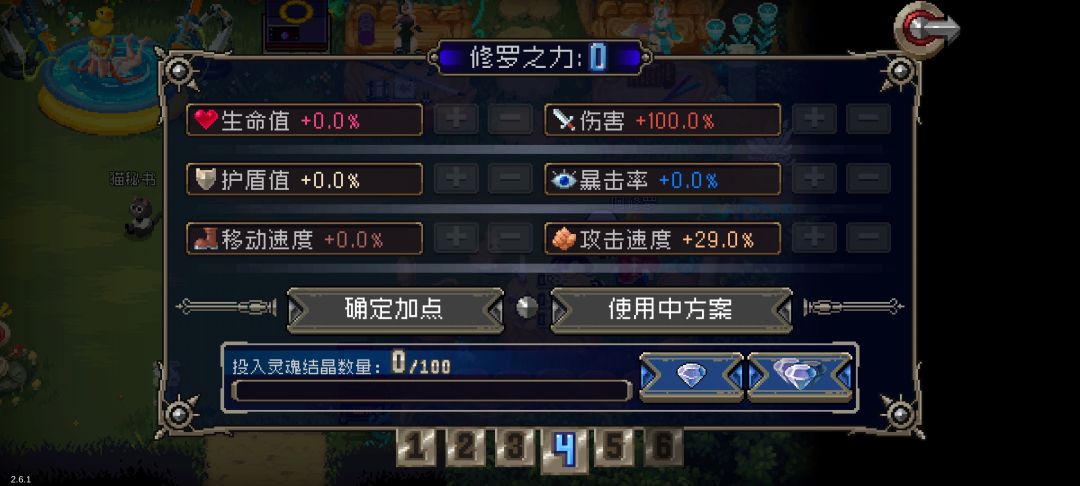 1.修罗之力加点 伤害>速度>暴击>攻速 2.六道之力选择为诡道 词条为: ①隐身首次攻击更高倍率 ②隐身首次攻击必定暴击 ③击败敌人下一次闪避为完美闪避 ④完美闪避刷新技能 3.角色道魂选择词条为: ①满血敌人2倍伤害 ②无氧持续时间越长,伤害越高剩下两个看你心情 4.局内道具与魂力 撬棍/眼镜/披风/琥珀/透镜/战斧/武士铠/魂铠/蘑菇/戒指+猫爪匕首/反氪金/图腾(不升级)/缩小锤/玻璃人/