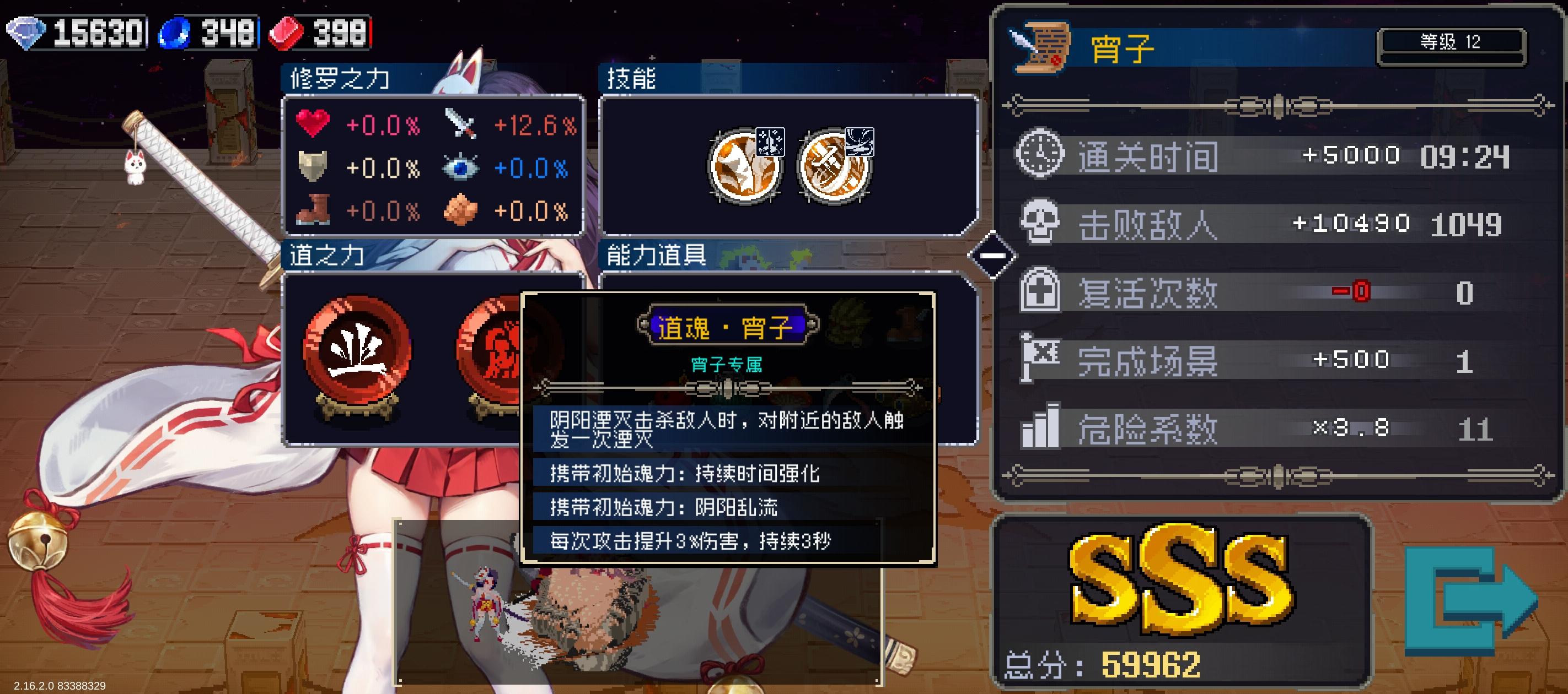 拿圣诞活动自选业道之后,进去就是乱秒,道具道魂什么的乱选乱配。至于这个通过时间,是我没有追求速度