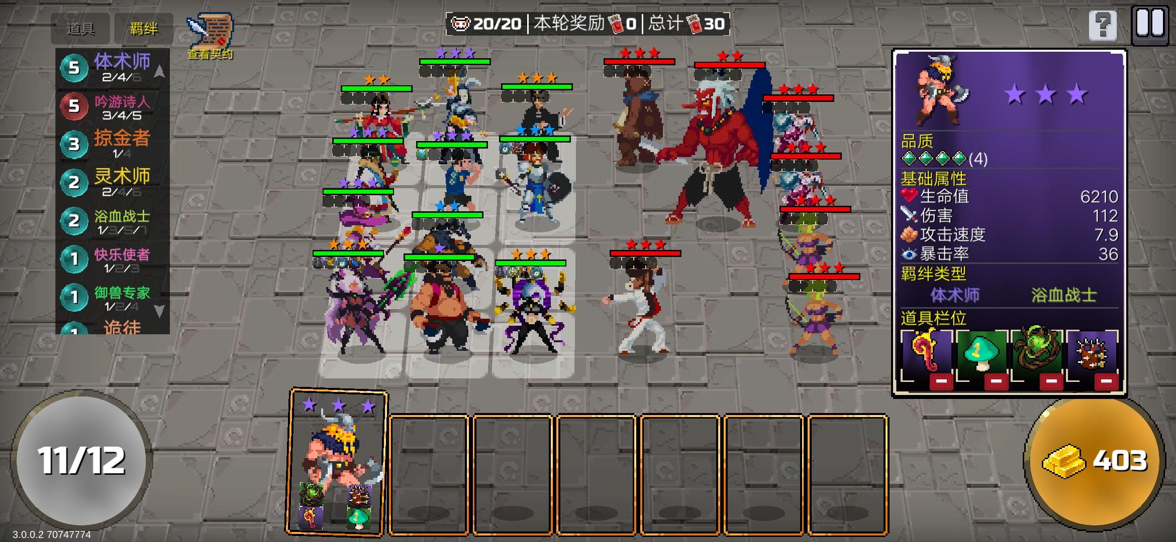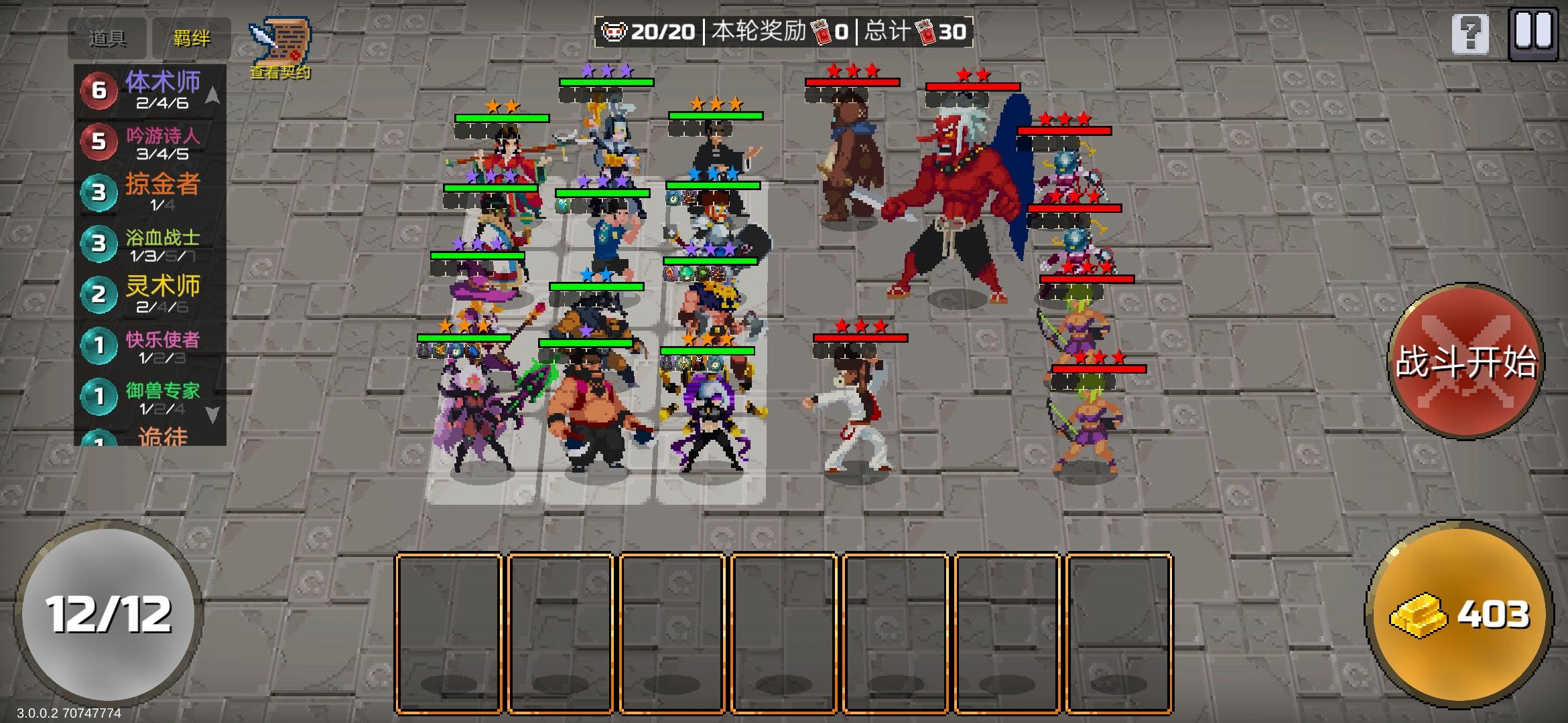 1.电表倒转核心:卡牌概率免费➕1费刷新=无限金币虽然这种最简单无脑,显然易见非常吃运气,可遇不可求😨。具体操作:这两个契约刷出来后,直接把场上所有卡牌卖掉得启动资金,然后就开始不停刷刷刷,零费卡买了卖掉,刷新……如此循环😋几百上千金币,想怎么玩都行😃(要是这你都过不了那就没办法了🤔)2.吟游诗人➕浴血战士正常打法中最稳套路,不吃道具、羁绊、契约,不靠运气,非酋专属。核心:吟游诗人优