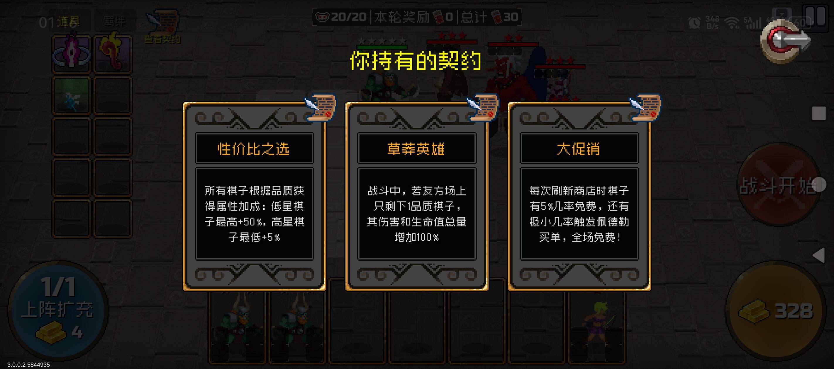 契约不是很完美,但还是通了,雷电神力,冰冻也很重要选他是因为他的攻击模型可能是一星里最好的,远程怪众所周知都不太行,近战的狼人试了下中期的浴血战士不是很有用,反而会因为掉血太快起负作用,在兔子和战士中选了战士,一星通难点大概在十一波,敌方提升很大,你又只有两个契约。这种挑战里战力契约会更有用,拿了经济契约也只能说更有可能在十一波时做出五星艰难度过,做不出来就过不去,不
