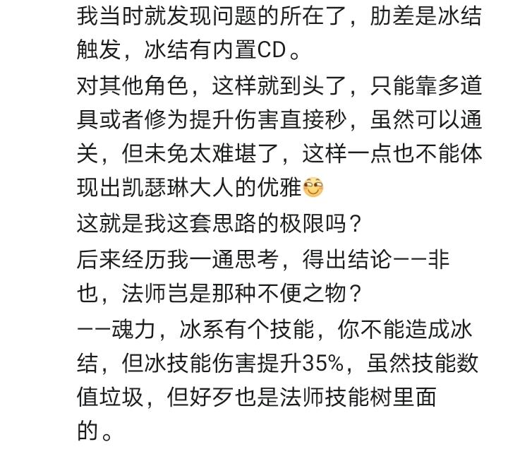 如视频,0修三件套的情况下,应该能验证角色强度了吧。 自从进入11难版本,异常伤害从以前固定数值变成跟着伤害走,我就觉得凯瑟琳失去了她的NO.1的地位。 有些心灰意冷就脱坑了一段时间,但现在看来,是我人菜,和角色无关,我的凯瑟琳大人还是傲立群雄,是我有眼无珠! 主要因素还是远古道魂的原因。 以至于远古修罗道的词条,让哪怕现在的版本真神霄子,想挑战凯瑟琳的话还是差点意思! 别非引战,听我慢慢道来! 首