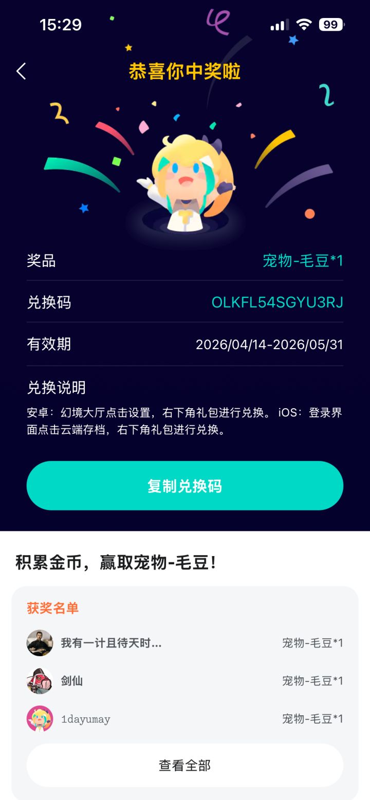 获奖名单公示如下:公示期:即日起至2026年4月21日18:00。*公示期间,若战士们发现获奖者使用外挂参与活动,请@幻境猫秘书 ,猫秘书将进行封号处理并生成新的获奖名单。公示期结束后的反馈不予处理。若无异议,猫秘书将在公示结束后给到发奖QQ群群号。请获奖战士及时入群,填写调查问卷兑奖。地牢里有一类神秘群体:在探索时不错过每一个房间,在战斗后不错过每一件战利,遇到大天狗从不惯着,遇到