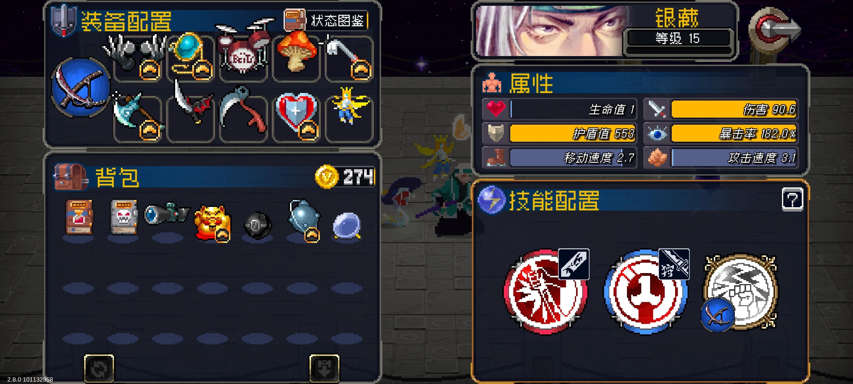 守水晶的时候可以叠到1500+的血,这局运不好,如果第一次打完就能拿到镰刀和史莱姆戒指的话,可以叠到1000多的基础血,加那个技能少说2200+应该没问题,要是临时提供的血量持续时间长一点就好了