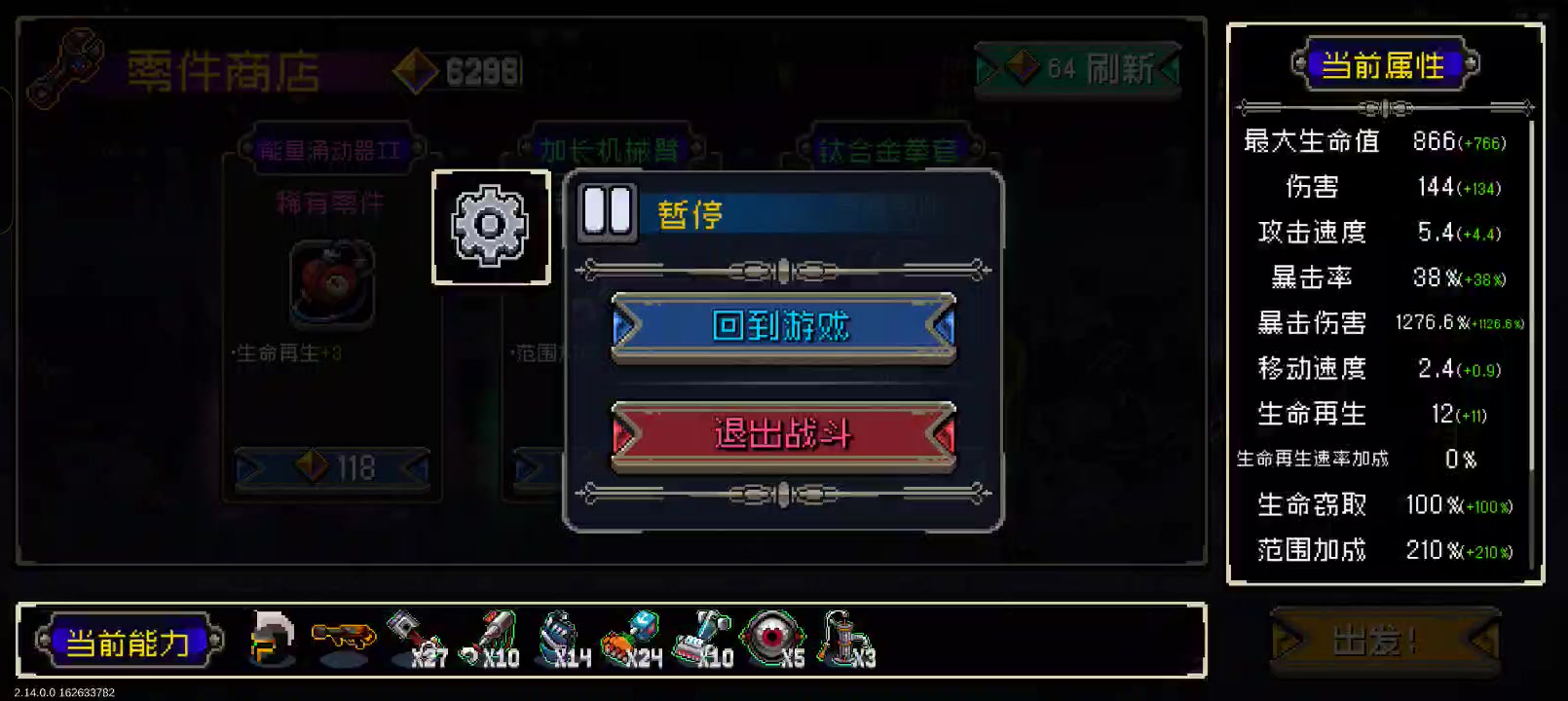 #战魂铭人 记录仪+净化(喷火器)开局,每一关刚开始往前闪避一下,尽量多杀怪,漏掉的怪不用管,第一关应该能升两级,升级奖励选范围或者爆燃相关(优先范围),零件买资源、拾取范围、暴击、爆伤、伤害,后面零件注意一下紫色红色零件带debuff的慎重选择。带血条的怪先清理掉,伤害起来之后就是割草随便打了。