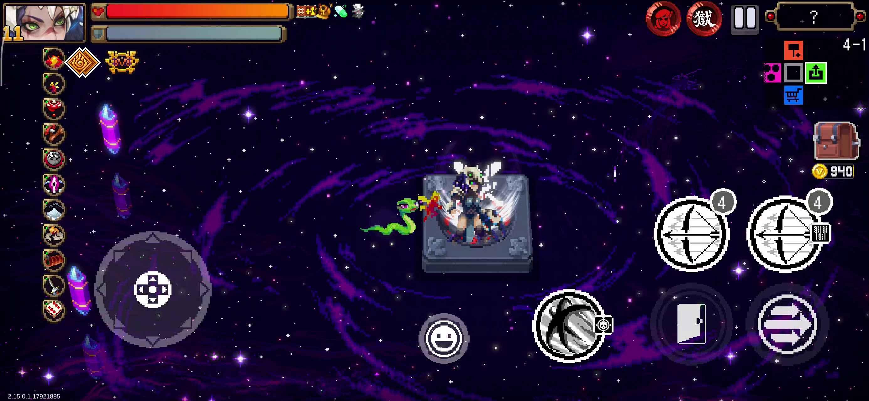 #战魂铭人战场模式 如图,爱凯莎超凡皮肤使用连射矢贯穿追踪时会叠加大量追踪特效,一般情况下boss坚持不到黑屏就会阵亡,屏幕最多出现大量伪影闪烁。 但在战场最后一关挑战大章鱼时,高额血量以及锁血脱战造成了这样的情况:屏幕全黑无法看见boss红色箭头攻击提示,难以躲避某些招式。