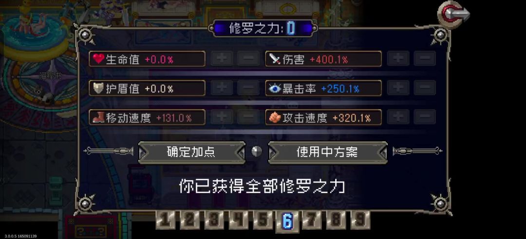 本视频为了回应某人,特意发的——0修0武器,还想0羁绊,但后续才发现,暴击2个道具已经有一个羁绊了,虽然可以用垃圾羁绊洗掉,但觉得没必要了,反正效果差不多。 道魂就是传统刷裂缝道魂,虽然可以用远古修罗道魂,但真的——够了,真的够了。 (远古回血转弓,20结算收益,损血易伤,金币临时增加生命上限)