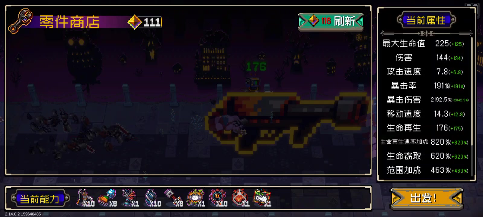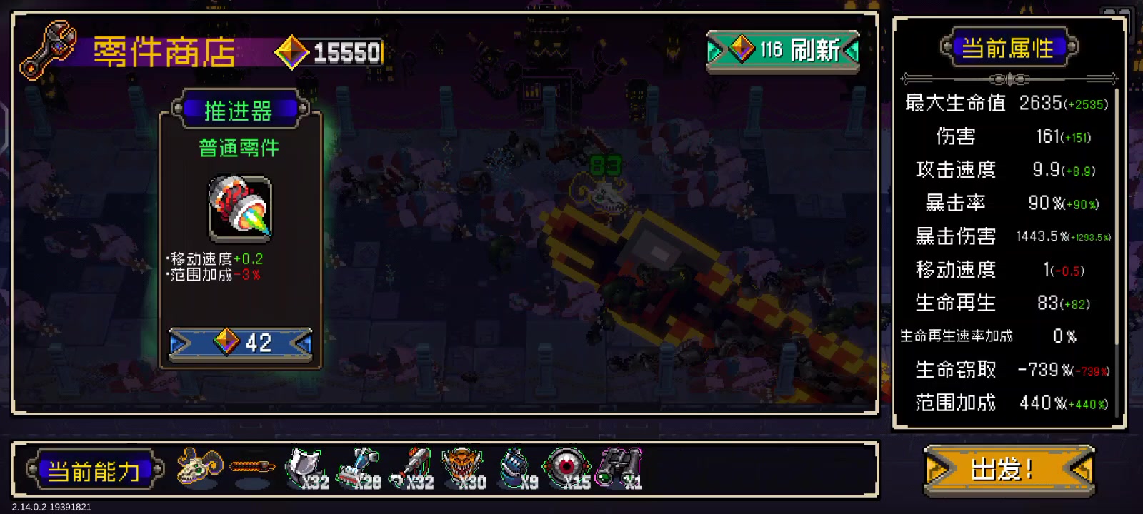 前面多买点回血速率范围资源,等武器的范围和范围叠加出来,就一勺料汁的碾过去了,ps:红零件里面有个锁1移速的和无法回血的不要买,买了锁1移速的就会像我视频一样变龟爬了