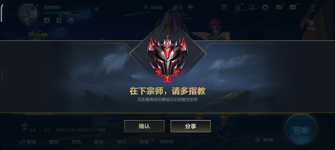 分享一下个人经验 比较菜的手残党专用 大佬就别来了 首先刚到大师 打辅助最好用 进去啥别管秒选日女 符文一定要带冰川和骸骨这两很关键 一直打到15星 直接换打野 进去秒选赵信 必须先攻看到人就捅他 没赵信选盲僧看到人先给他一套 注意如果你感觉系统要制裁你了 让队友搬掉狗熊 剑魔这两玩意 这样上分就简单多了 打不过你就认栽 毕竟咱们本来实力就一般 没有带飞队友的说法 其实比较恶心的玩小号练英雄 这种