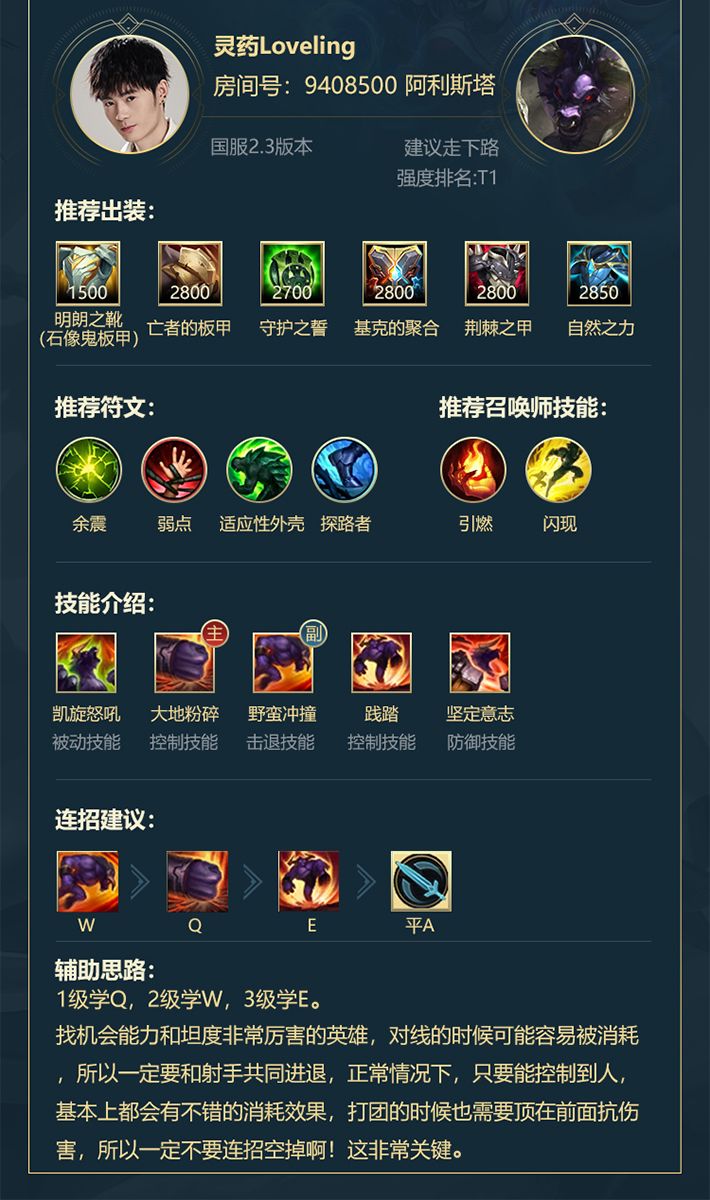 哈喽各位小伙伴,我是灵药LoveLing,LOL手游国服已经开始内测,在这里为大家献上LOL手游的全英雄攻略,本帖是辅助篇。 欢迎各位小伙伴积极留言,同时也欢迎各位小伙伴到斗鱼9408500来看我的冲分直播,学技术来看我就对了! 话不多说,上干货! 阿利斯塔: 布里茨: 布隆: 古拉加斯: 拉克丝: 蕾欧娜: 璐璐: 娜美: 瑟拉芬妮: 娑娜: 索拉卡: 迦娜: