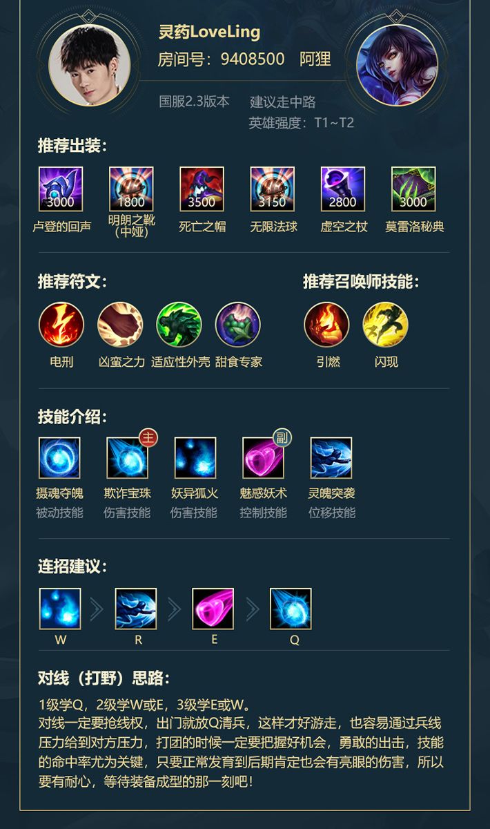哈喽各位小伙伴,我是灵药LoveLing,LOL手游国服已经开始内测,在这里为大家献上LOL手游的全英雄攻略,本帖是中单篇。 欢迎各位小伙伴积极留言,同时也欢迎各位小伙伴到斗鱼9408500来看我的冲分直播,学技术来看我就对了! 话不多说,上干货! 阿狸: 安妮: 奥利安娜: 崔斯特: 黛安娜: 菲兹: 古拉加斯: 吉格斯: 劫: 库奇: 拉克丝: 瑟拉芬妮: 亚索: 铸星龙王: