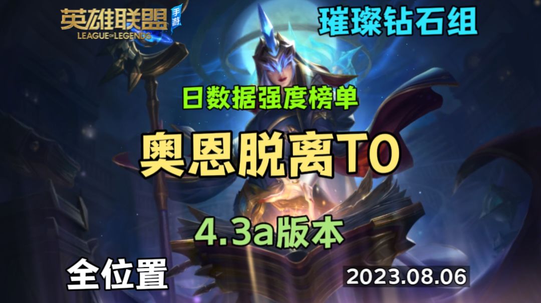 4.3a版本强度榜—璀璨钻石组 奥恩掉出T0但仍旧强势