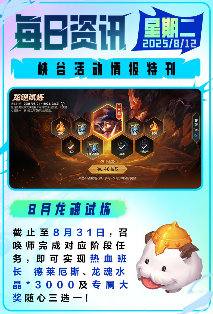 根据福利日历,假期第2天依旧是领大礼的时候!隆哥掐指一算,人人黑龙体验就是今天!更多福利也随隆哥看看吧~ 秋风送爽 累登好礼 截止至10月9日,召唤师登录游戏参与活动,即可领取赤缠通宝*450、甄选皮肤幸运抵扣券、无双道具自选宝箱(7天)(内含“回城特效-龙战于野”等珍稀个性化道具体验卡)等奖励!10月9日当天登录,更有橙色原石*20及精选个性化道具自选宝箱免费送~ 天使凯尔 重做归来 圣裁之刻降