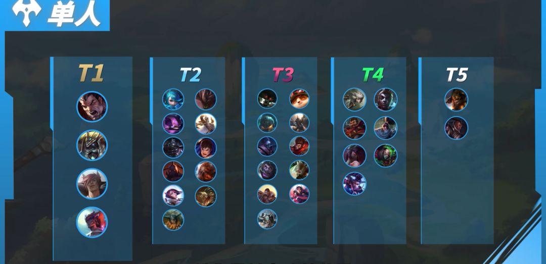 在之前游戏内更新到新版本后,还开启了“热血激斗 排位护航”活动,在这个活动中,召唤师可领取海克斯能量卡*3作为奖励,帮助大家排位更安心、上分更省心~ 那么问题来了,有了更快的上分道具,怎么选择更好的上分英雄呢?为了解答这个问题,隆哥今天再次请到作者:研究员小智,由他来为大家盘点现版本推荐的上分英雄~ 单人路英雄推荐 首先是单人路的情况,即使青钢影 卡蜜尔在之前的版本中稍有削弱,但依旧凭借着近乎完美