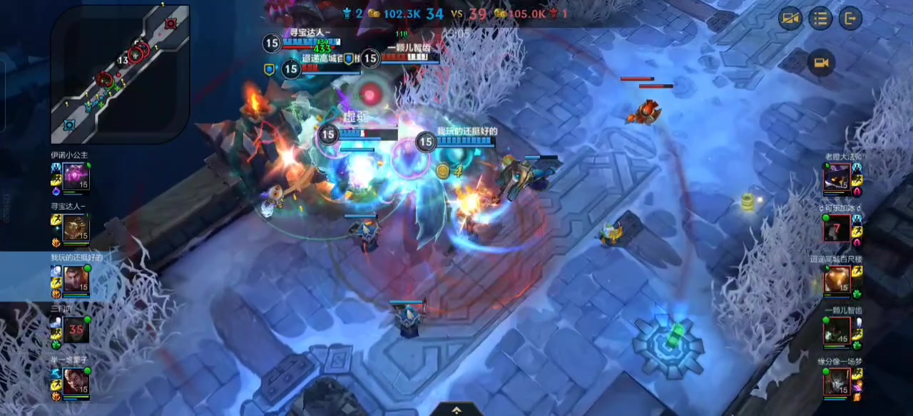 最后一波大概在14s左右,3个人都出的肉还都是满血,血条一下子变了然后被秒#英雄联盟手游