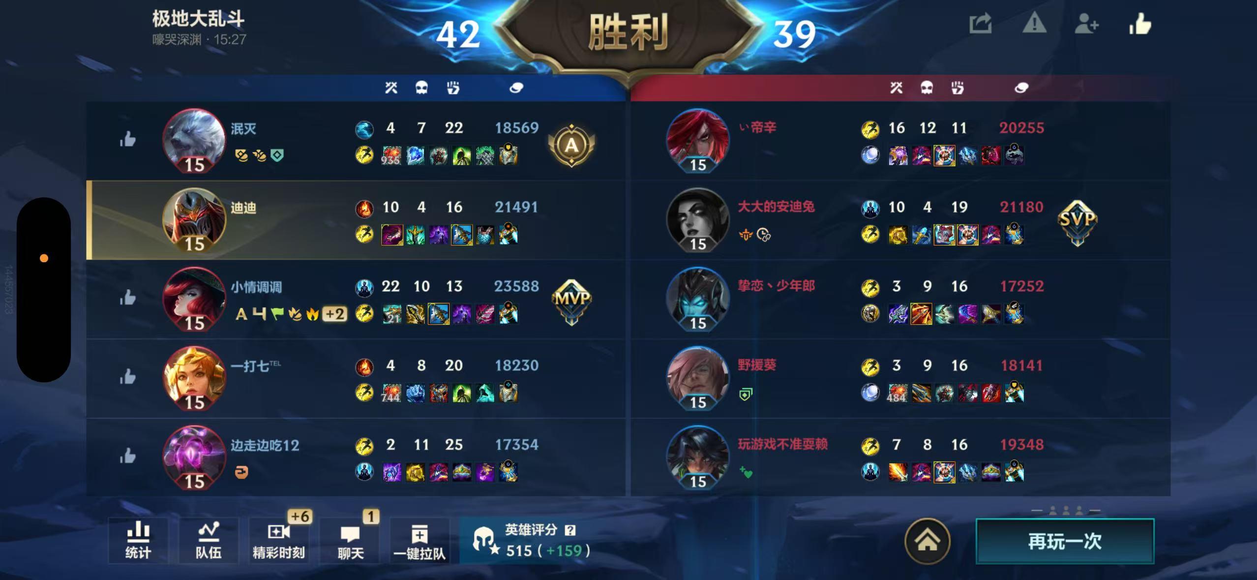 蒙多开局到最后没管过后排,对面除了塞纳剩下的一直在冲我们后排脸,我裸冰杖一直在后面控制减速给他和ad加盾怕死了,他后面一打了四五个觉得无敌了,嫌我抢奖杯了就开始骂我,我说十五级之前你骂我我不挑你理,十五级之后我TM易损暴击飞羽赌出来了我凭什么不能拿奖杯,关键一波他在后面挂机我让卡莉斯塔冲脸杀了就开始骂我故意送奖杯,我都笑了,但凡不挂机,对面那个敢在我面前说肉,打完还加我好友骂我他能一打五我怎么就送