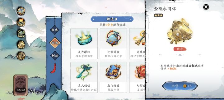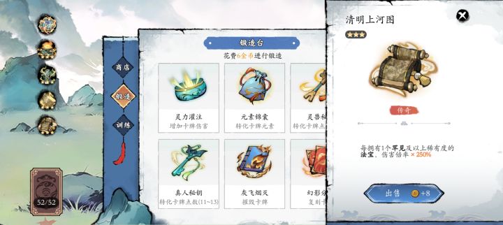 ☜看了论坛里面仅有的几个神机妙算帖子,才终于知道伤害倍率的重要性。既有凑巧,也有刻意,还有运气,我巅峰时期的伤害倍率达到1780%+1780%+980%+500%+250%*3=5790%。☜法宝真的很重要,商店一开张就要立即买法宝。如果运气好就能买到可以不断永久增成的法宝,实在不行就要挑选那些容易触发的法宝(法宝有触发条件)或者能让你更容易达成出招的法宝(诸如两个元素视同一个元素)。如果商店实