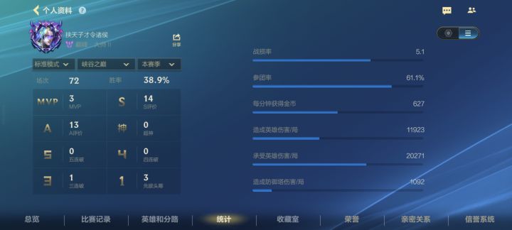 39到72,33场只赢了7局,我承认我菜但你系统给我匹配的队友真的是人类吗,还有我玩辅助的平均2把就给我补位一把上单,上单这个位置都没人玩了吗,系统你真无敌了给我匹配到的队友不是卡分的就是同样补位的,我是犯了什么罪了吗,你系统这样针对我,我好歹上赛季也是个传说啊我也贡献日活了呀,我们这种牢玩家就该被你英雄联盟手游恶心是吗
