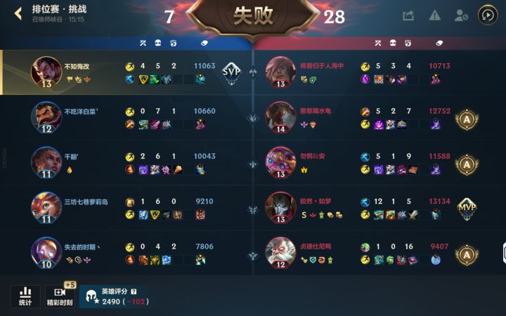 上赛季 247场 57%胜率 王者60星。(大家可以看我之前的帖子)这赛季 224场 55%胜率 王者64星。只玩上路。补位过辅助和打野,大约20局。80%对局是双排。上路主玩:根据场次排序,瑞兹(100局)、小火龙(30局)、鳄鱼、永恩、纳尔、炼金。BAN 莫德凯撒(90%)、梅尔(5%)、诺手(5%)。这赛季上路影响力仍然很小。还得看中野大哥。为什么我会说“这游戏越玩越没意思”。